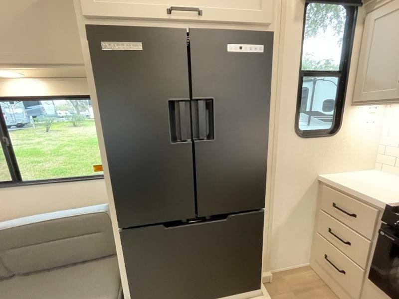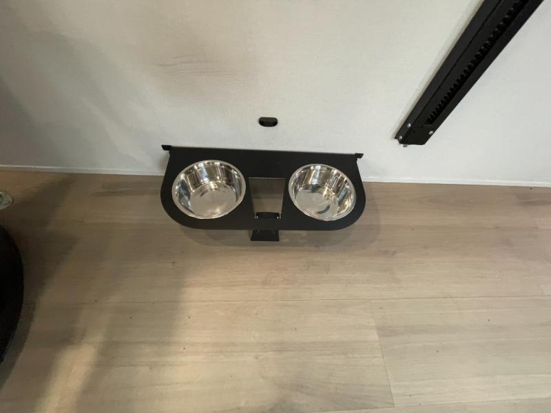 Load up your favorite off-road toys into the 15' garage area of this toy hauler! You will appreciate the convenience of having a full bathroom with a walk-in shower, the flip-up countertop extension in the kitchen, and flip-up pet dish. The rear ramp door can even be converted into a patio, plus there are exterior speakers to keep the party going. The rollover sofa and 15 cu. ft. refrigerator reside in a slide for more interior space as you prepare delicious meals in the fully equipped kitchen. The front private bedroom offers an escape to rest and relax on the queen bed for the next ride!