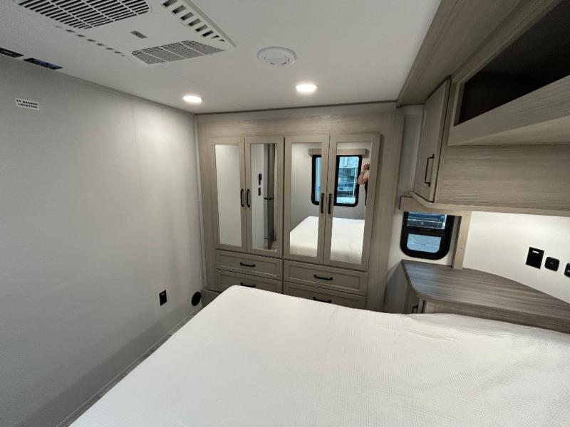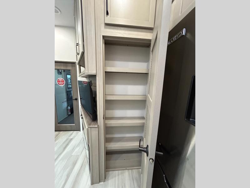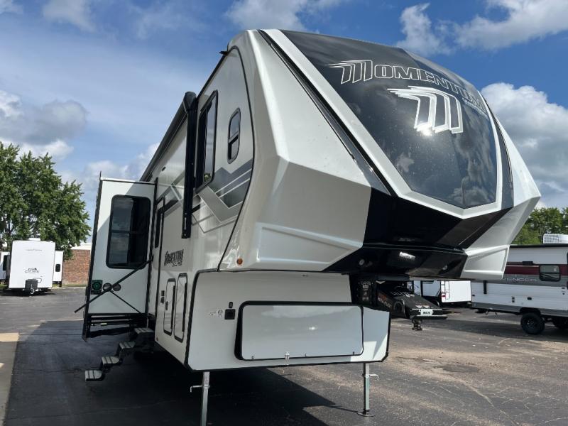 Are you looking for adventure and fun? The Momentum G-Class toy hauler by Grand Design will help you find it! You can explore during any season you choose with the Insulation Package that includes a heated and enclosed underbelly with suspended tanks, a high-capacity furnace, a moisture barrier floor enclosure, and cabinet-mounted heat ducts. Each model includes a fuel station with an interior and exterior gauge, a dovetail rear rend, and 2,500-LB tie-downs anchored into the chassis. Throughout the Momentum G-Class interior, you'll enjoy many comfortable features like large panoramic windows, a shower skylight, USB chargers in the bedroom, and residential cabinetry.