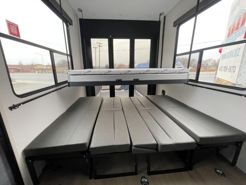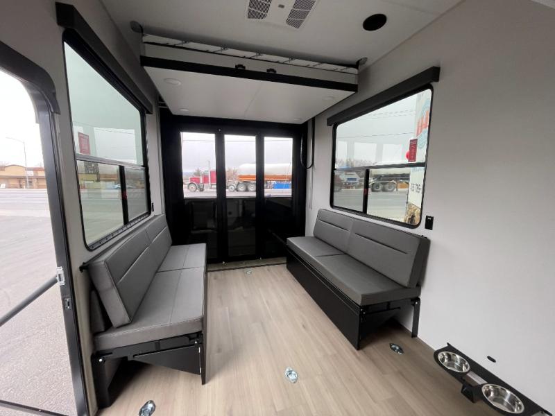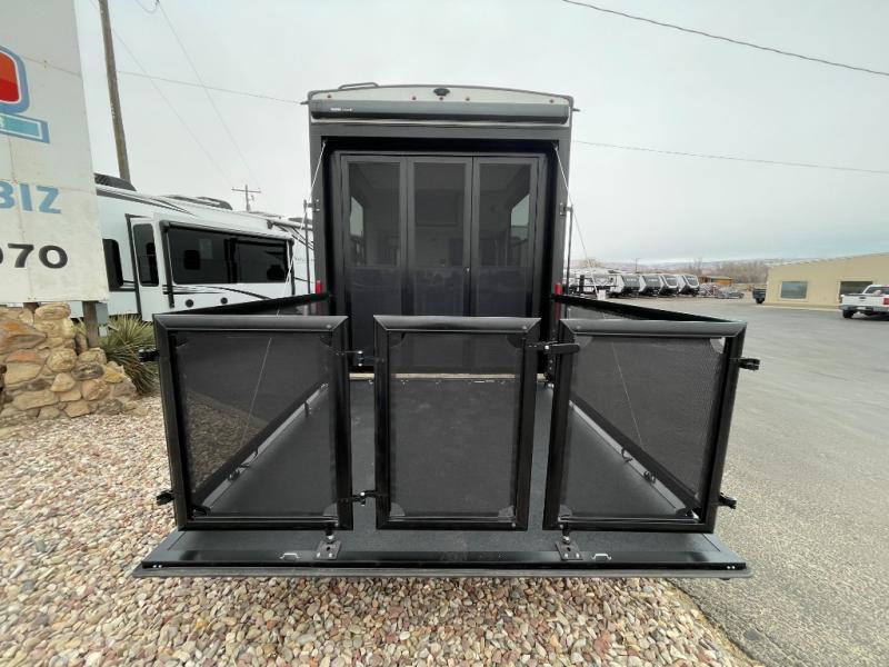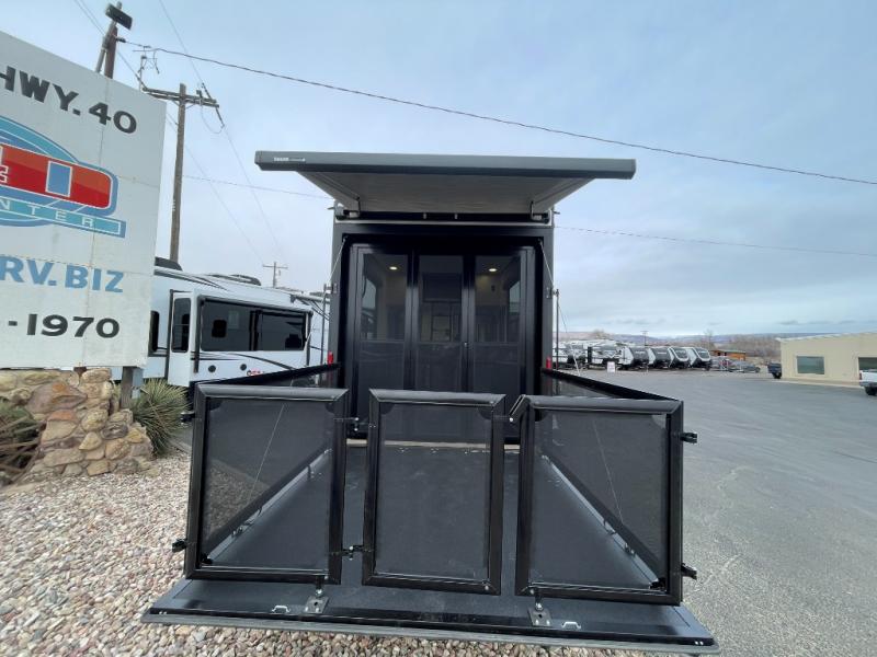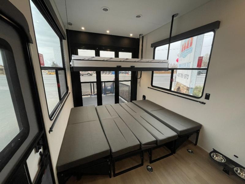 Just imagine the fun you will have with this Momentum G-Class toy hauler set up at any off-road park. With the 14' 6" separate garage that includes a half bath, a second exterior entry door, and a loft, you will have your own area to do what you like. The rear ramp door can even be converted into a patio if you need more outdoor living space. The main living area offers a fireplace, theater seating, and kitchen appliances to make delicious home cooked meals. You will also be able to stay clean and ready for the next ride with the walk-in shower in the full bathroom, and the front master bedroom has plenty of storage for clothing with the wardrobe slide and overhead cabinets.