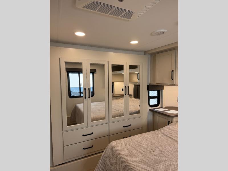 Are you looking for adventure and fun? The Momentum G-Class toy hauler by Grand Design will help you find it! You can explore during any season you choose with the Insulation Package that includes a heated and enclosed underbelly with suspended tanks, a high-capacity furnace, a moisture barrier floor enclosure, and cabinet-mounted heat ducts. Each model includes a high capacity water pump, a dovetail rear end, and 2,500-LB tie-downs anchored into the chassis. Throughout the Momentum G-Class interior, you'll enjoy many comfortable features like large panoramic windows, a shower skylight, USB chargers in the bedroom, and residential cabinetry.