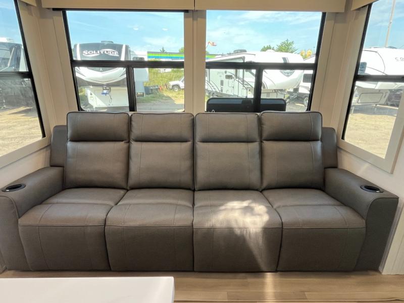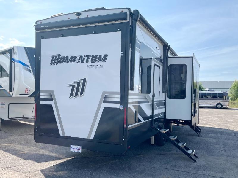 With any Momentum M-Class toy hauler by Grand Design, you will enjoy luxury at every turn! They have been constructed to a superior standard with a thermal roof design, triple insulated main floor and garage floor, and a Rail-Tite underbelly seal that will allow you to camp in all elements. Each model also features an 8' 5" wide body chassis with a wide rail design, no wheel wheels, and a dovetail entry for easier loading. The Stealth A/C system provides maximum cooling power, and the CRE3000 suspension system means you can enjoy a smooth tow each time. You will love the luxurious interior with a professional grade stainless steel cooktop, interior color changing LED accent lighting, a fiberglass shower with a glass door, and solid surface countertops.