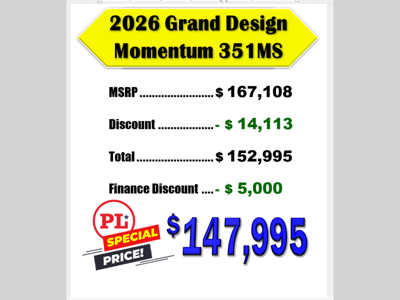 New 2026 Grand Design Momentum M-Class 351MS Toy Hauler Fifth Wheel