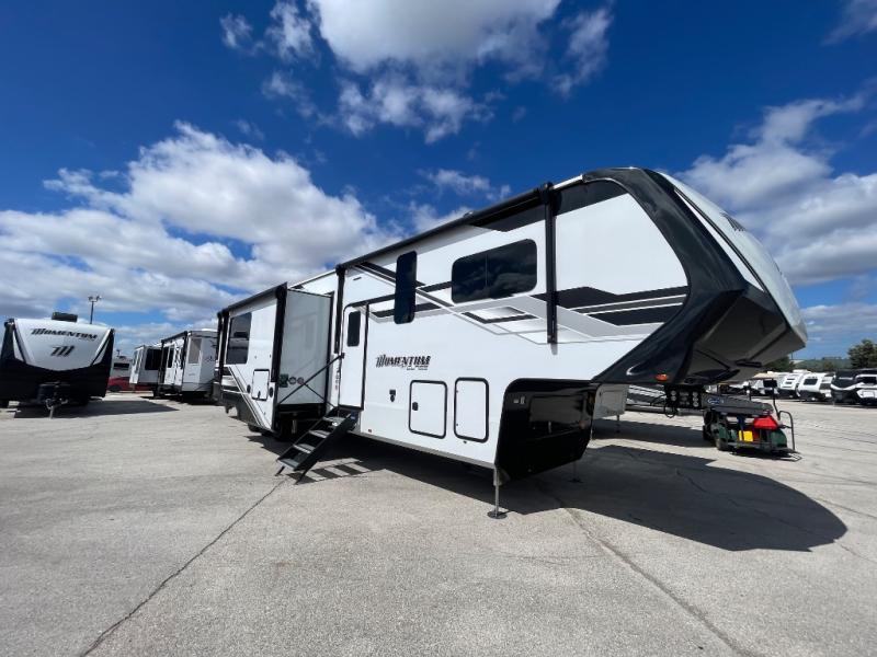 Grand Design Momentum M-Class 414M toy hauler fifth wheel highlights: