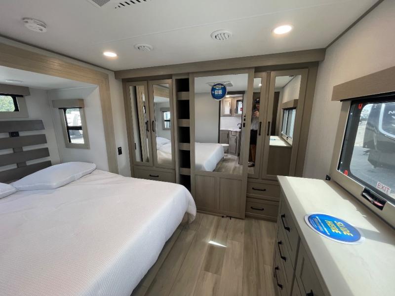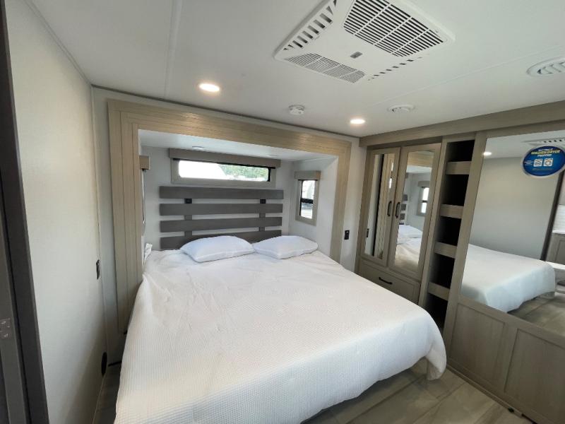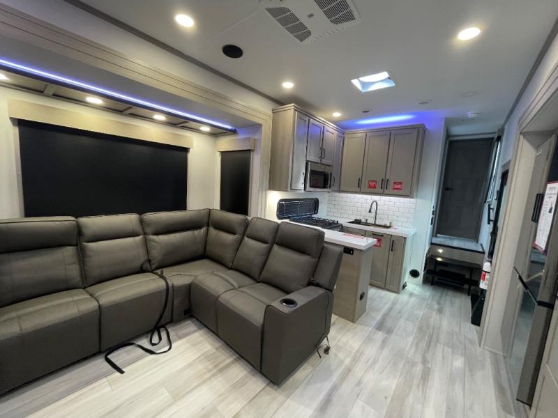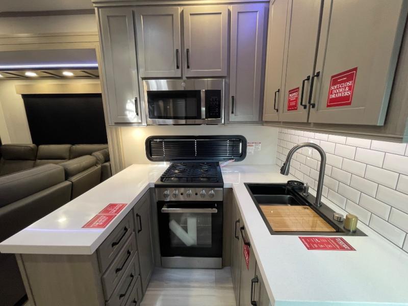 With any Momentum M-Class toy hauler by Grand Design, you will enjoy luxury at every turn! They have been constructed to a superior standard with a thermal roof design, triple insulated main floor and garage floor, and a Rail-Tite underbelly seal that will allow you to camp in all elements. Each model also features a, 8' 5" wide body chassis with a wide rail design, no wheel wheels, and a dovetail entry for easier loading. The Stealth A/C system provides maximum cooling power, and the CRE3000 suspension system means you can enjoy a smooth tow each time. You will love the luxurious interior with a professional grade stainless steel cooktop, interior color changing LED accent lighting, a fiberglass shower with a glass door, and solid surface countertops.