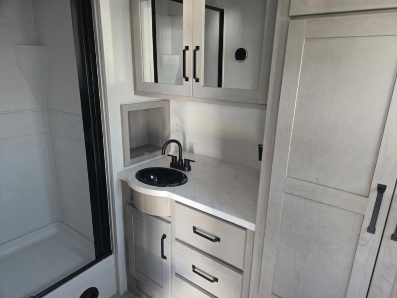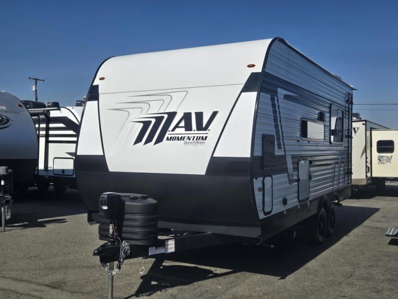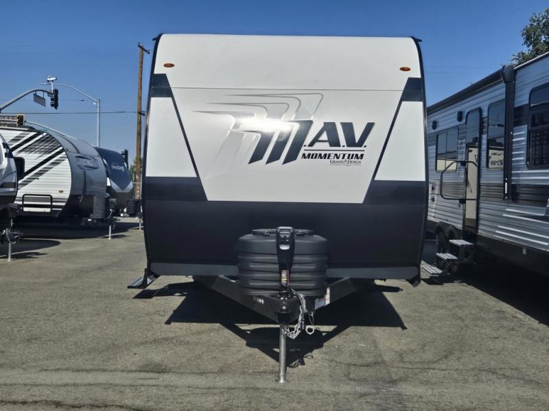 The Momentum MAV toy hauler travel trailers by Grand Design are designed to provide exactly what you need. The spacious garage provides tons of cargo space, with no wheel wells to get in the way. Additional storage includes magnetic storage door catches, and overhead consoles throughout. Conveniences like motion sensor lights and USB outlets will make your life easier, and you will be comfortable in all seasons with the 30K BTU furnace plus 15K BTU ducted air conditioning. The standard Solar Package comes with a 180W solar panel, a 40 Amp charge controller with Bluetooth, and a 12V refrigerator so you can go off-grid when the adventure calls for it.