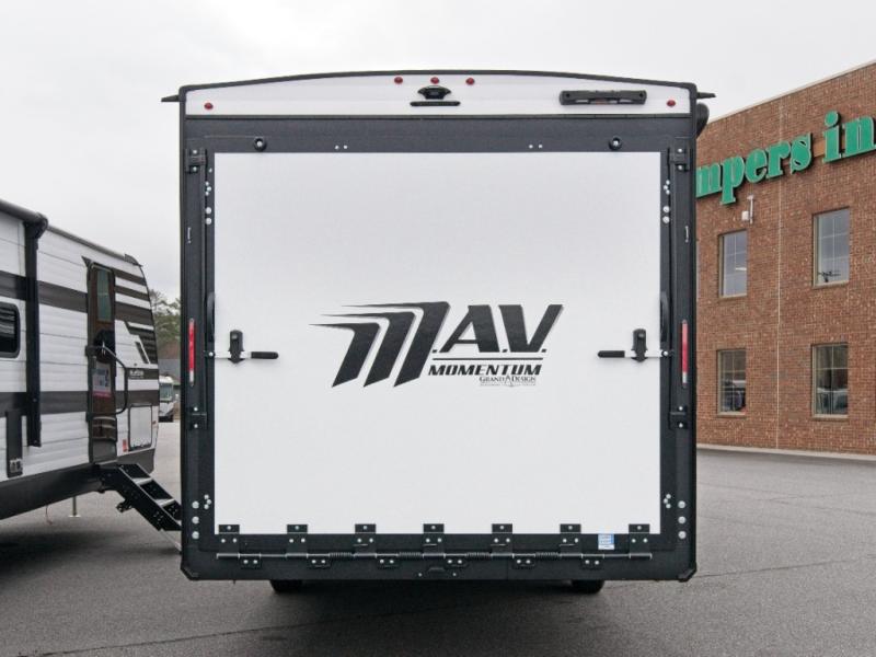 The Grand Design Momentum MAV 27MAV is a versatile toy hauler travel trailer designed for thrill-seekers who want spacious cargo capacity, modern amenities, and a comfortable place to unwind after a day on the trails.