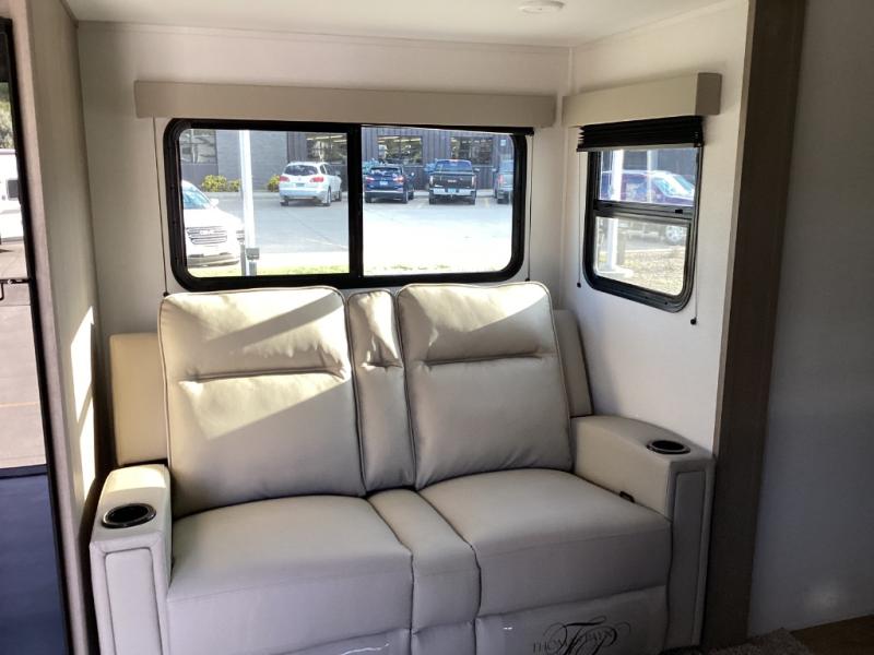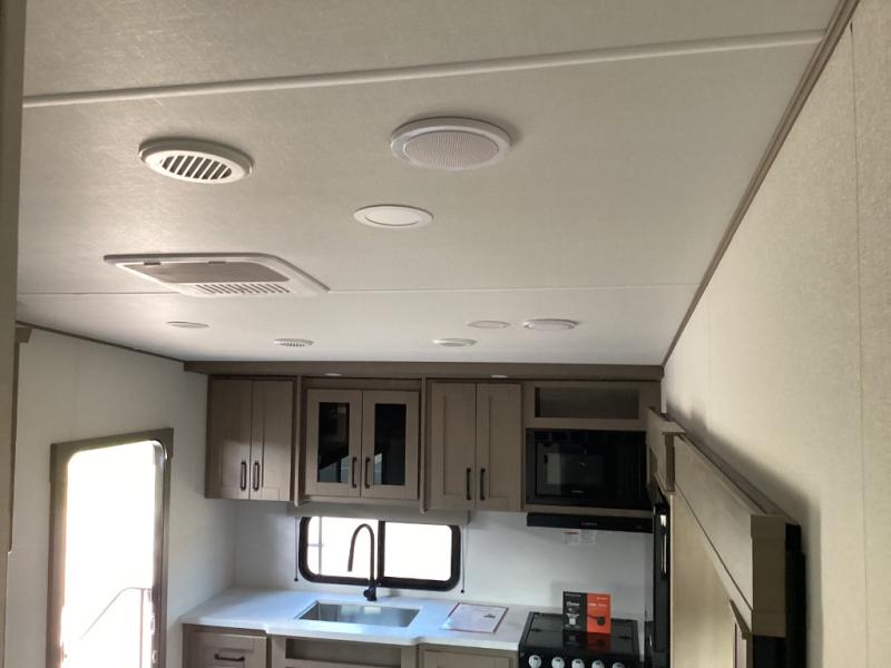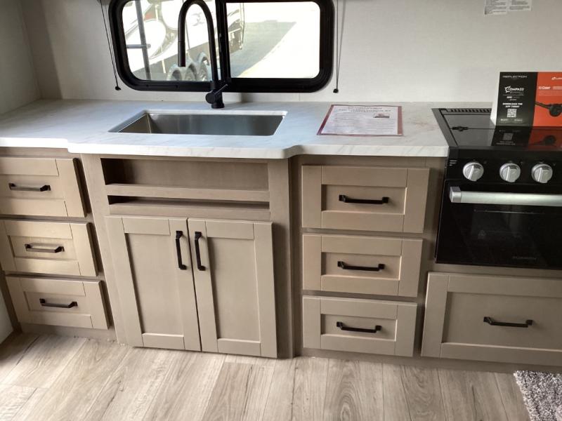 Designed for traveling couples or small families, the Reflection 100 Series 22RK offers upscale fifth wheel comfort while staying lightweight and easy to tow. With its rear kitchen layout, premium finishes, and all-season preparedness, it combines luxury and flexibility in just under 27 feet.