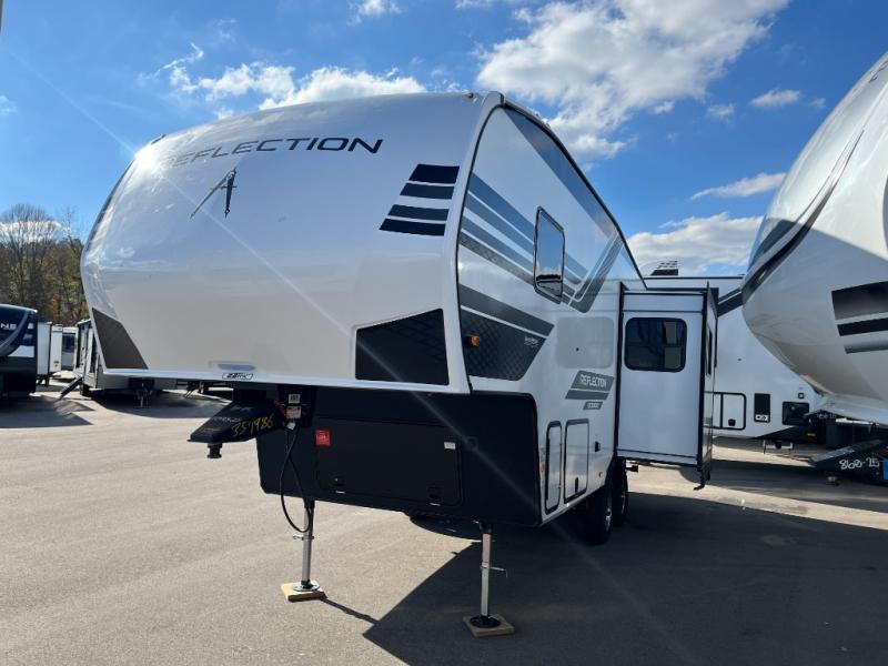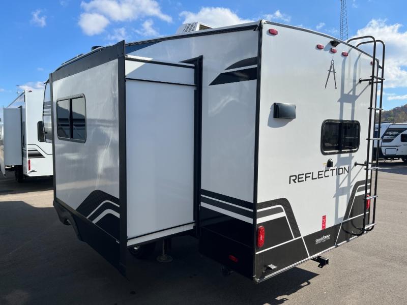 Each Reflection 100 Series fifth wheel by Grand Design is affordable and packed with luxury for unforgettable camping memories! The MorRyde CRE3000 suspension system and Goodyear Endurance tires will provide smooth towing from home to campground. And the solar package with a 180W solar panel, 60 Amp charge controller and 12V refrigerator will allow you to camp for longer periods of time and in more locations! A heated and enclosed underbelly with circulating heat is included in the Arctic 4-Seasons Protection Package, along with a double insulated roof and front cap, and thermofoil insulation under the holding tanks so you can camp all year long if you choose. You will appreciate having an on-demand water heater for hot showers after exploring, and the universal all-in-one docking station will let you monitor your RVs tanks levels and functions with ease. These models also include many luxurious interior features, such as premium Congoleum flooring, pleated shades, residential cabinetry, and matte black fixtures and hardware. Don't let the Reflection 100 Series fifth wheels pass you by!