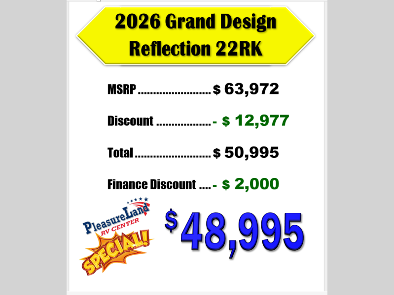 New 2026 Grand Design Reflection 100 Series 22RK Fifth Wheel