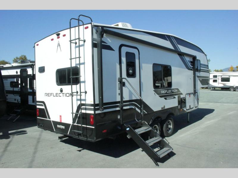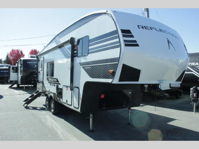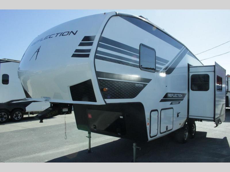 Each Reflection 100 Series fifth wheel by Grand Design is affordable and packed with luxury for unforgettable camping memories! The MorRyde CRE3000 suspension system and Goodyear Endurance tires will provide smooth towing from home to campground. And the solar package with a 180W solar panel, 60 Amp charge controller and 12V refrigerator will allow you to camp for longer periods of time and in more locations! A heated and enclosed underbelly with circulating heat is included in the Arctic 4-Seasons Protection Package, along with a double insulated roof and front cap, and thermofoil insulation under the holding tanks so you can camp all year long if you choose. You will appreciate having an on-demand water heater for hot showers after exploring, and the universal all-in-one docking station will let you monitor your RVs tanks levels and functions with ease. These models also include many luxurious interior features, such as premium Congoleum flooring, pleated shades, residential cabinetry, and matte black fixtures and hardware. Don't let the Reflection 100 Series fifth wheels pass you by!