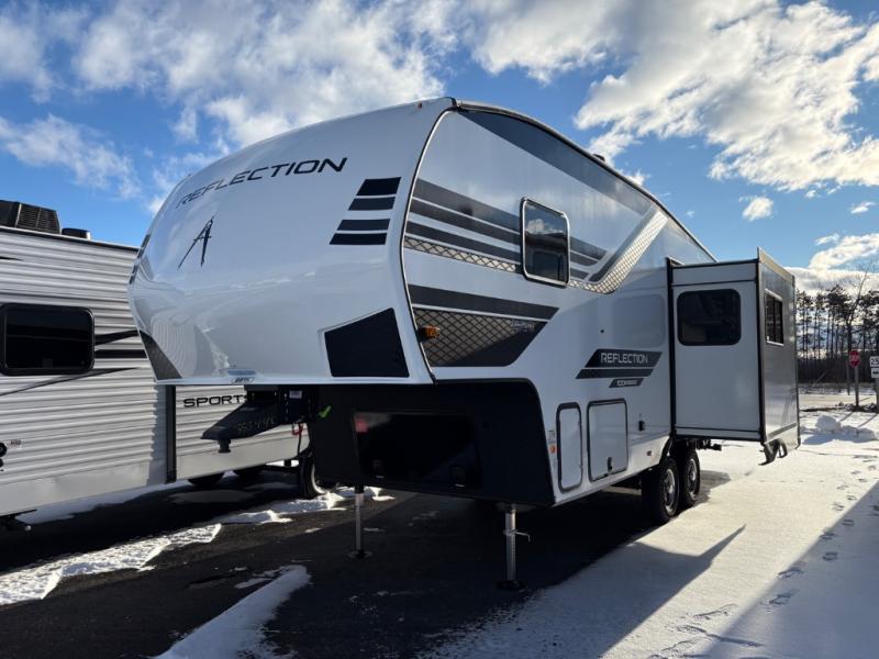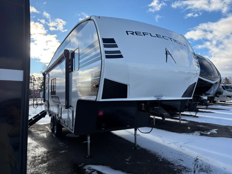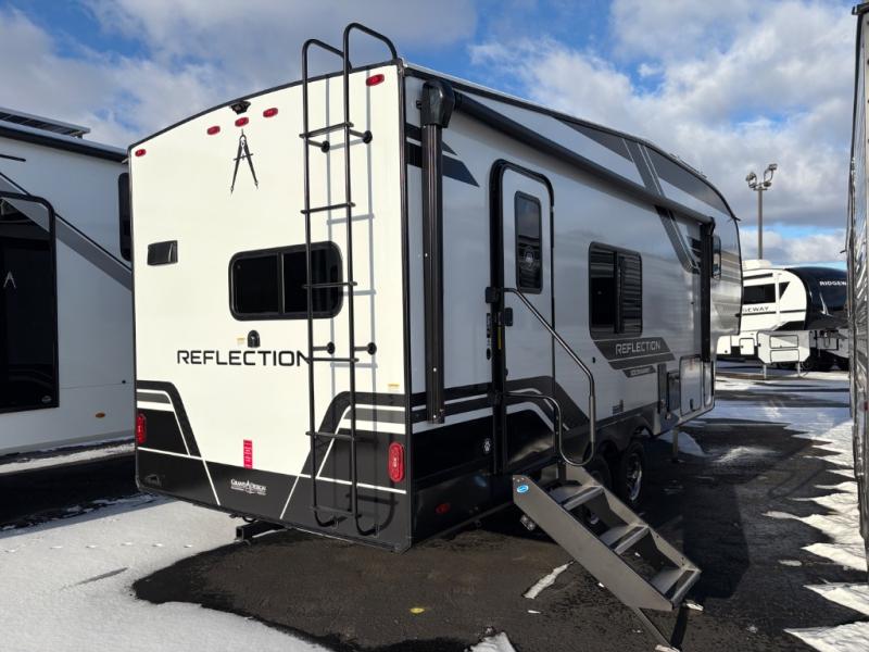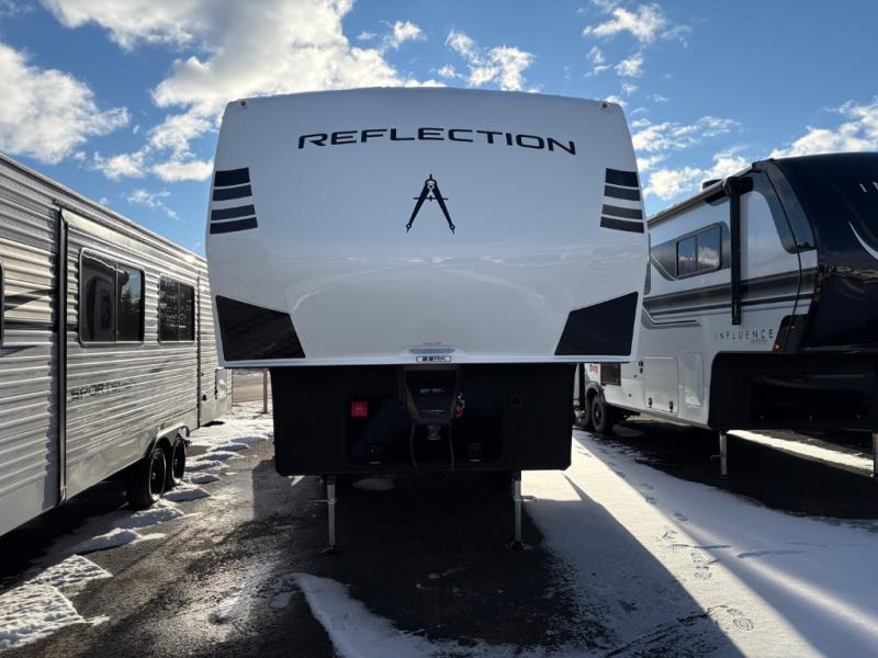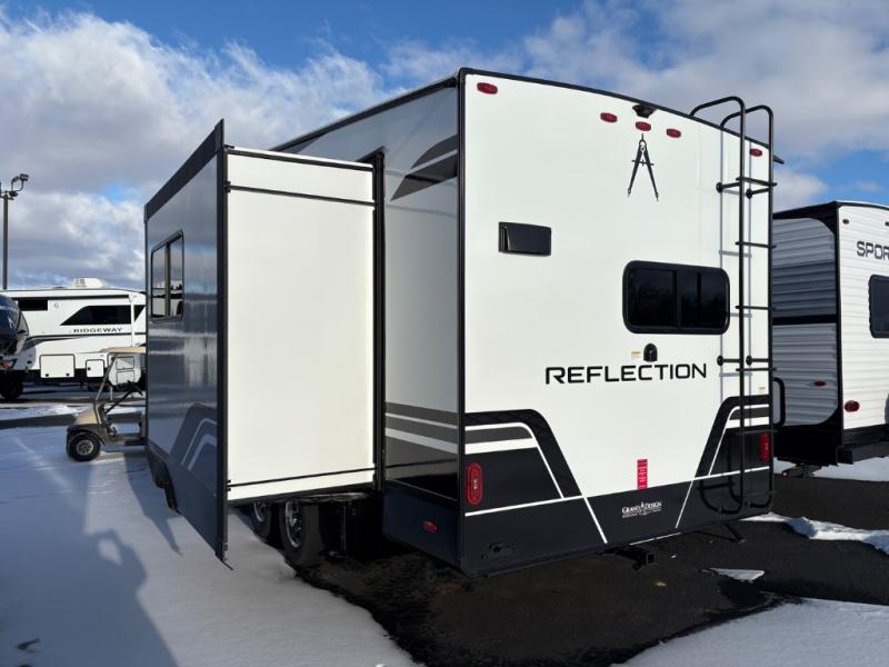 Each Reflection 100 Series fifth wheel by Grand Design is affordable and packed with luxury for unforgettable camping memories! The MorRyde CRE3000 suspension system and Goodyear Endurance tires will provide smooth towing from home to campground. And the solar package with a 180W solar panel, 60 Amp charge controller and 12V refrigerator will allow you to camp for longer periods of time and in more locations! A heated and enclosed underbelly with circulating heat is included in the Arctic 4-Seasons Protection Package, along with a double insulated roof and front cap, and thermofoil insulation under the holding tanks so you can camp all year long if you choose. You will appreciate having an on-demand water heater for hot showers after exploring, and the universal all-in-one docking station will let you monitor your RVs tanks levels and functions with ease. These models also include many luxurious interior features, such as premium Congoleum flooring, pleated shades, residential cabinetry, and matte black fixtures and hardware. Don't let the Reflection 100 Series fifth wheels pass you by!