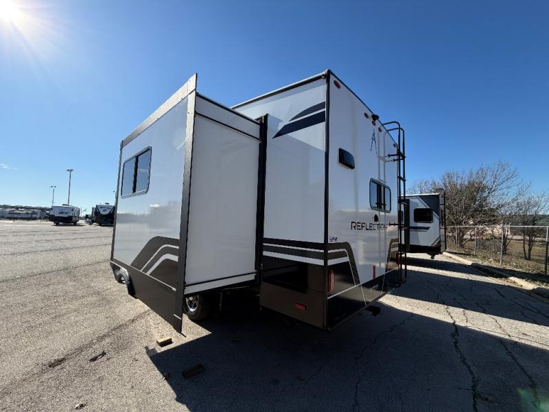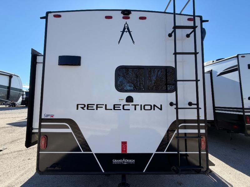 Each Reflection 100 Series fifth wheel by Grand Design is affordable and packed with luxury for unforgettable camping memories! The MorRyde CRE3000 suspension system and Goodyear Endurance tires will provide smooth towing from home to campground. And the solar package with a 180W solar panel, 60 Amp charge controller and 12V refrigerator will allow you to camp for longer periods of time and in more locations! A heated and enclosed underbelly with circulating heat is included in the Arctic 4-Seasons Protection Package, along with a double insulated roof and front cap, and thermofoil insulation under the holding tanks so you can camp all year long if you choose. You will appreciate having an on-demand water heater for hot showers after exploring, and the universal all-in-one docking station will let you monitor your RVs tanks levels and functions with ease. These models also include many luxurious interior features, such as premium Congoleum flooring, pleated shades, residential cabinetry, and matte black fixtures and hardware. Don't let the Reflection 100 Series fifth wheels pass you by!