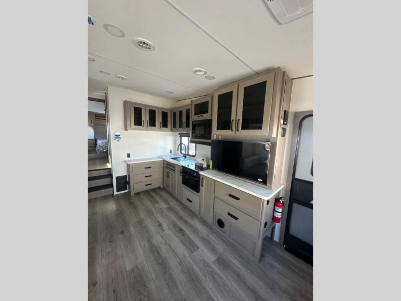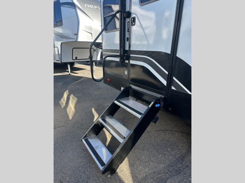 Each Reflection 100 Series fifth wheel by Grand Design is affordable and packed with luxury for unforgettable camping memories! The MorRyde CRE3000 suspension system and Goodyear Endurance tires will provide smooth towing from home to campground. And the solar package with a 180W solar panel, 60 Amp charge controller and 12V refrigerator will allow you to camp for longer periods of time and in more locations! A heated and enclosed underbelly with circulating heat is included in the Arctic 4-Seasons Protection Package, along with a double insulated roof and front cap, and thermofoil insulation under the holding tanks so you can camp all year long if you choose. You will appreciate having an on-demand water heater for hot showers after exploring, and the universal all-in-one docking station will let you monitor your RVs tanks levels and functions with ease. These models also include many luxurious interior features, such as premium Congoleum flooring, pleated shades, residential cabinetry, and matte black fixtures and hardware. Don't let the Reflection 100 Series fifth wheels pass you by!