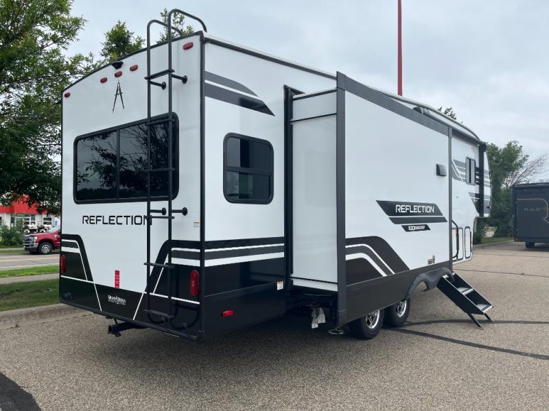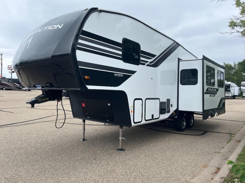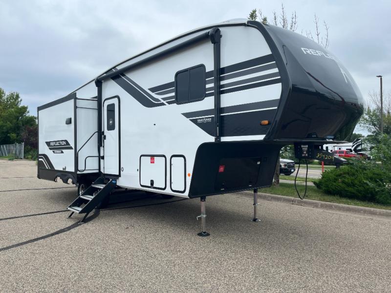 Each Reflection 100 Series fifth wheel by Grand Design is affordable and packed with luxury for unforgettable camping memories! The MorRyde CRE3000 suspension system and Goodyear Endurance tires will provide smooth towing from home to campground. And the solar package with a 180W solar panel, 60 Amp charge controller and 12V refrigerator will allow you to camp for longer periods of time and in more locations! A heated and enclosed underbelly with circulating heat is included in the Arctic 4-Seasons Protection Package, along with a double insulated roof and front cap, and thermofoil insulation under the holding tanks so you can camp all year long if you choose. You will appreciate having an on-demand water heater for hot showers after exploring, and the universal all-in-one docking station will let you monitor your RVs tanks levels and functions with ease. These models also include many luxurious interior features, such as premium Congoleum flooring, pleated shades, residential cabinetry, and matte black fixtures and hardware. Don't let the Reflection 100 Series fifth wheels pass you by!