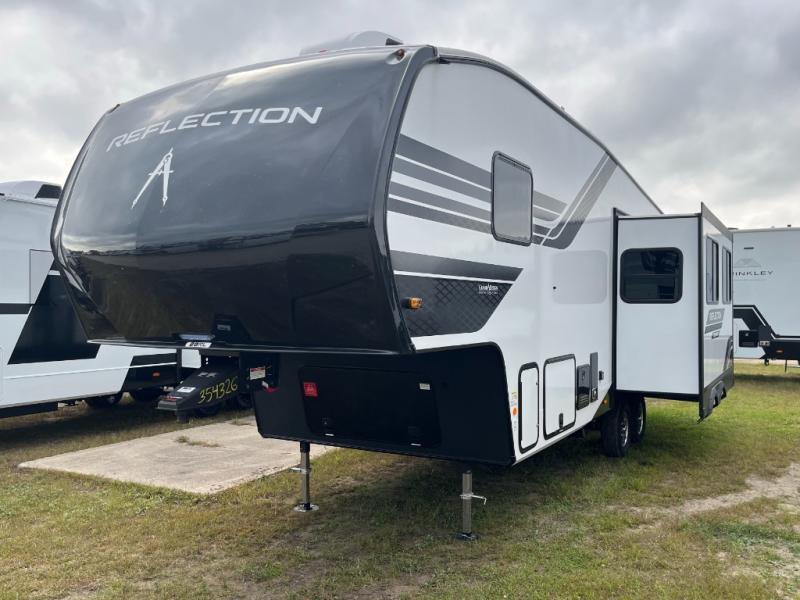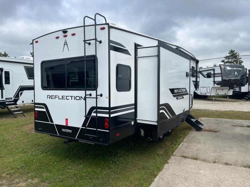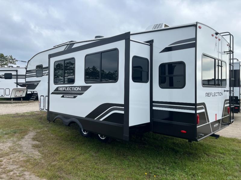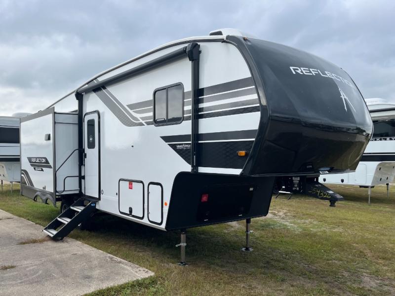 Each Reflection 100 Series fifth wheel by Grand Design is affordable and packed with luxury for unforgettable camping memories! The MorRyde CRE3000 suspension system and Goodyear Endurance tires will provide smooth towing from home to campground. And the solar package with a 180W solar panel, 60 Amp charge controller and 12V refrigerator will allow you to camp for longer periods of time and in more locations! A heated and enclosed underbelly with circulating heat is included in the Arctic 4-Seasons Protection Package, along with a double insulated roof and front cap, and thermofoil insulation under the holding tanks so you can camp all year long if you choose. You will appreciate having an on-demand water heater for hot showers after exploring, and the universal all-in-one docking station will let you monitor your RVs tanks levels and functions with ease. These models also include many luxurious interior features, such as premium Congoleum flooring, pleated shades, residential cabinetry, and matte black fixtures and hardware. Don't let the Reflection 100 Series fifth wheels pass you by!