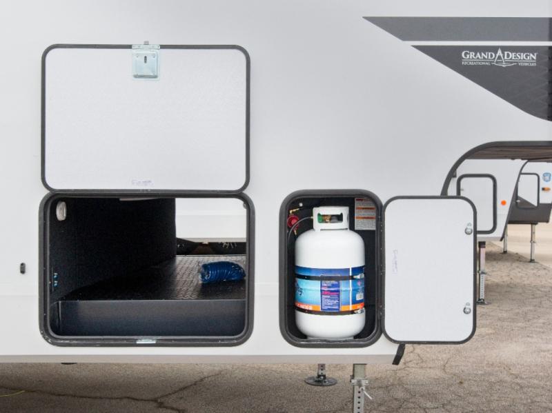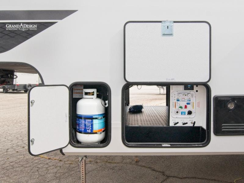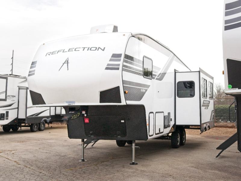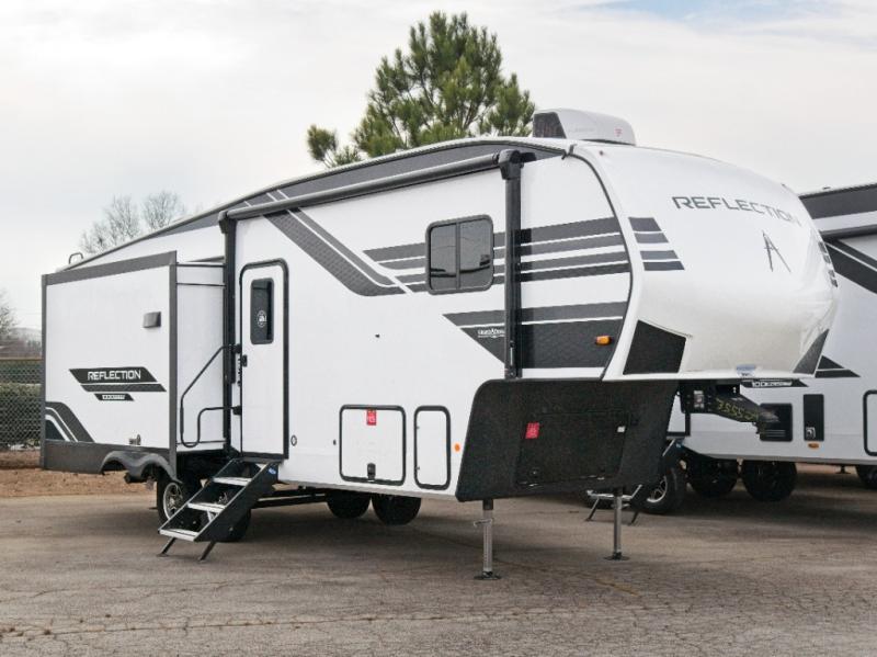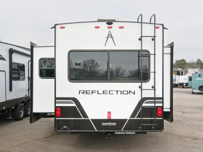 Each Reflection 100 Series fifth wheel by Grand Design is affordable and packed with luxury for unforgettable camping memories! The MorRyde CRE3000 suspension system and Goodyear Endurance tires will provide smooth towing from home to campground. And the solar package with a 180W solar panel, 60 Amp charge controller and 12V refrigerator will allow you to camp for longer periods of time and in more locations! A heated and enclosed underbelly with circulating heat is included in the Arctic 4-Seasons Protection Package, along with a double insulated roof and front cap, and thermofoil insulation under the holding tanks so you can camp all year long if you choose. You will appreciate having an on-demand water heater for hot showers after exploring, and the universal all-in-one docking station will let you monitor your RVs tanks levels and functions with ease. These models also include many luxurious interior features, such as premium Congoleum flooring, pleated shades, residential cabinetry, and matte black fixtures and hardware. Don't let the Reflection 100 Series fifth wheels pass you by!