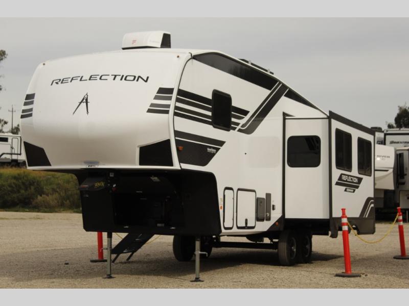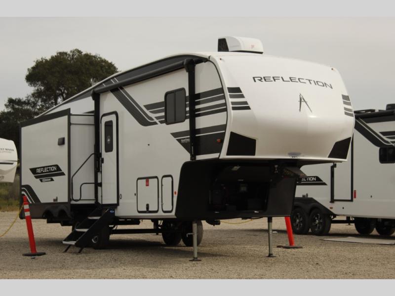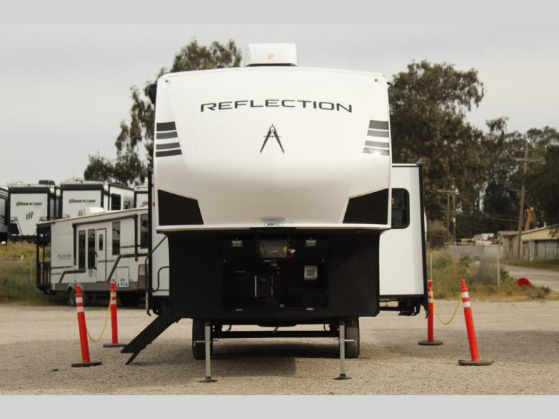 Each Reflection 100 Series fifth wheel by Grand Design is affordable and packed with luxury for unforgettable camping memories! The MorRyde CRE3000 suspension system and Goodyear Endurance tires will provide smooth towing from home to campground. And the solar package with a 180W solar panel, 60 Amp charge controller and 12V refrigerator will allow you to camp for longer periods of time and in more locations! A heated and enclosed underbelly with circulating heat is included in the Arctic 4-Seasons Protection Package, along with a double insulated roof and front cap, and thermofoil insulation under the holding tanks so you can camp all year long if you choose. You will appreciate having an on-demand water heater for hot showers after exploring, and the universal all-in-one docking station will let you monitor your RVs tanks levels and functions with ease. These models also include many luxurious interior features, such as premium Congoleum flooring, pleated shades, residential cabinetry, and matte black fixtures and hardware. Don't let the Reflection 100 Series fifth wheels pass you by!