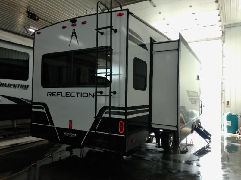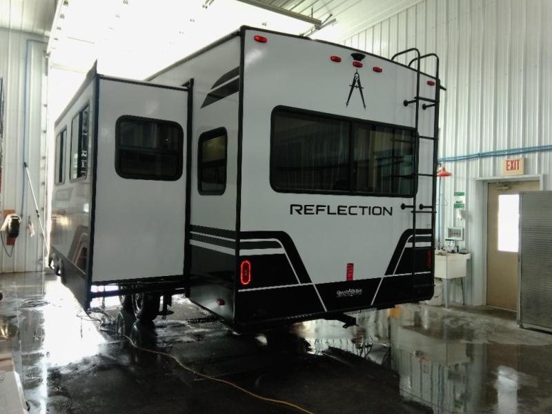 Each Reflection 100 Series fifth wheel by Grand Design is affordable and packed with luxury for unforgettable camping memories! The MorRyde CRE3000 suspension system and Goodyear Endurance tires will provide smooth towing from home to campground. And the solar package with a 180W solar panel, 60 Amp charge controller and 12V refrigerator will allow you to camp for longer periods of time and in more locations! A heated and enclosed underbelly with circulating heat is included in the Arctic 4-Seasons Protection Package, along with a double insulated roof and front cap, and thermofoil insulation under the holding tanks so you can camp all year long if you choose. You will appreciate having an on-demand water heater for hot showers after exploring, and the universal all-in-one docking station will let you monitor your RVs tanks levels and functions with ease. These models also include many luxurious interior features, such as premium Congoleum flooring, pleated shades, residential cabinetry, and matte black fixtures and hardware. Don't let the Reflection 100 Series fifth wheels pass you by!