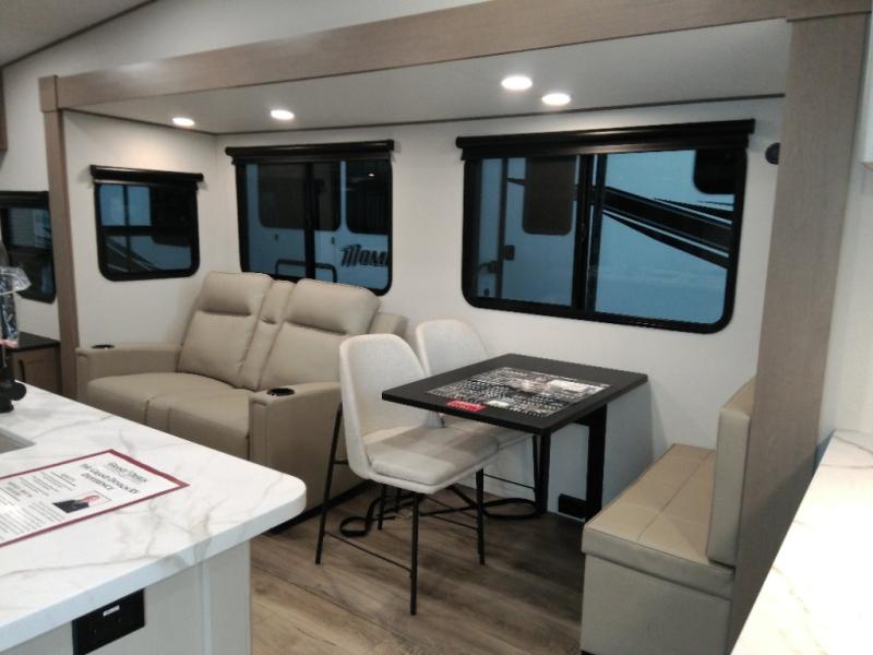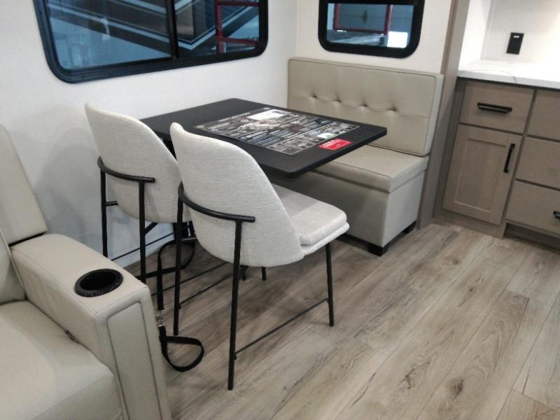 Optioned with: 2nd A/C 8000 BTU, and Swivel Dinette w/2 Chairs and Storage Ottoman.