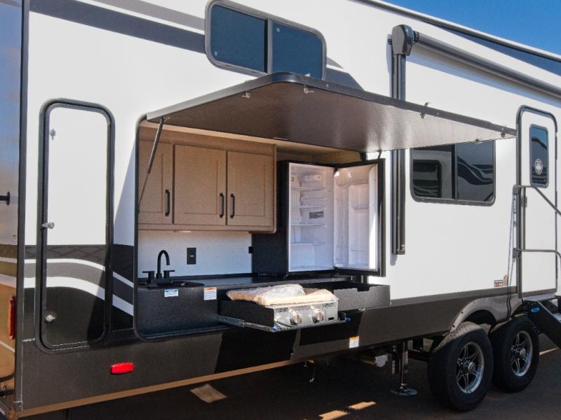 Experience the perfect blend of comfort and convenience with the Grand Design Reflection 32BH, featuring a spacious bunkhouse for the whole family and a fully equipped outside kitchen for effortless outdoor cooking.