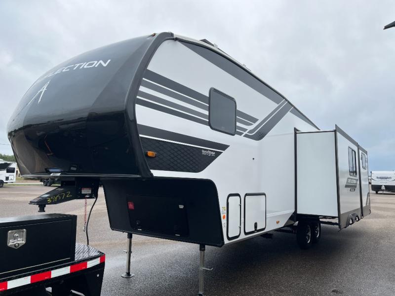 Each Reflection 100 Series fifth wheel by Grand Design is affordable and packed with luxury for unforgettable camping memories! The MorRyde CRE3000 suspension system and Goodyear Endurance tires will provide smooth towing from home to campground. And the solar package with a 180W solar panel, 60 Amp charge controller and 12V refrigerator will allow you to camp for longer periods of time and in more locations! A heated and enclosed underbelly with circulating heat is included in the Arctic 4-Seasons Protection Package, along with a double insulated roof and front cap, and thermofoil insulation under the holding tanks so you can camp all year long if you choose. You will appreciate having an on-demand water heater for hot showers after exploring, and the universal all-in-one docking station will let you monitor your RVs tanks levels and functions with ease. These models also include many luxurious interior features, such as premium Congoleum flooring, pleated shades, residential cabinetry, and matte black fixtures and hardware. Don't let the Reflection 100 Series fifth wheels pass you by!