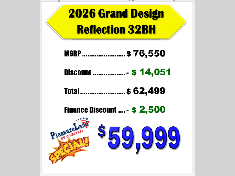 New 2026 Grand Design Reflection 100 Series 32BH Fifth Wheel