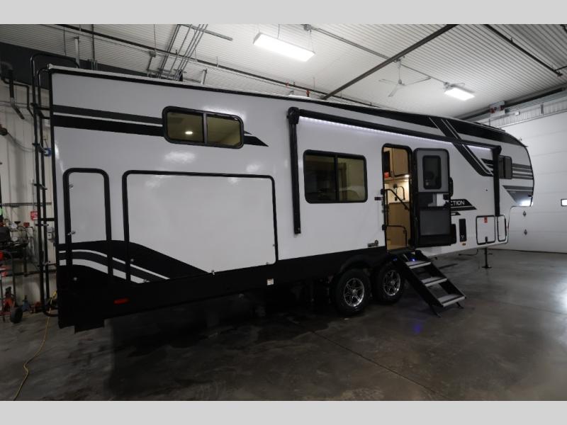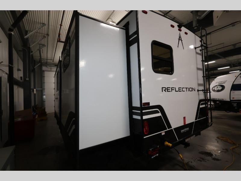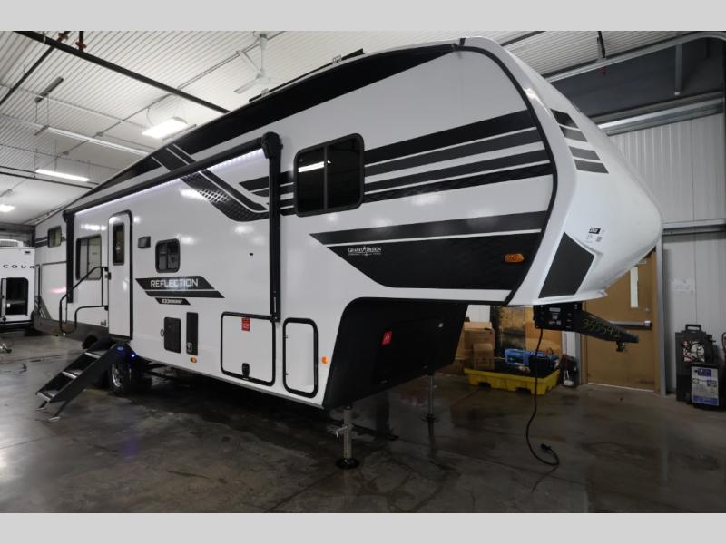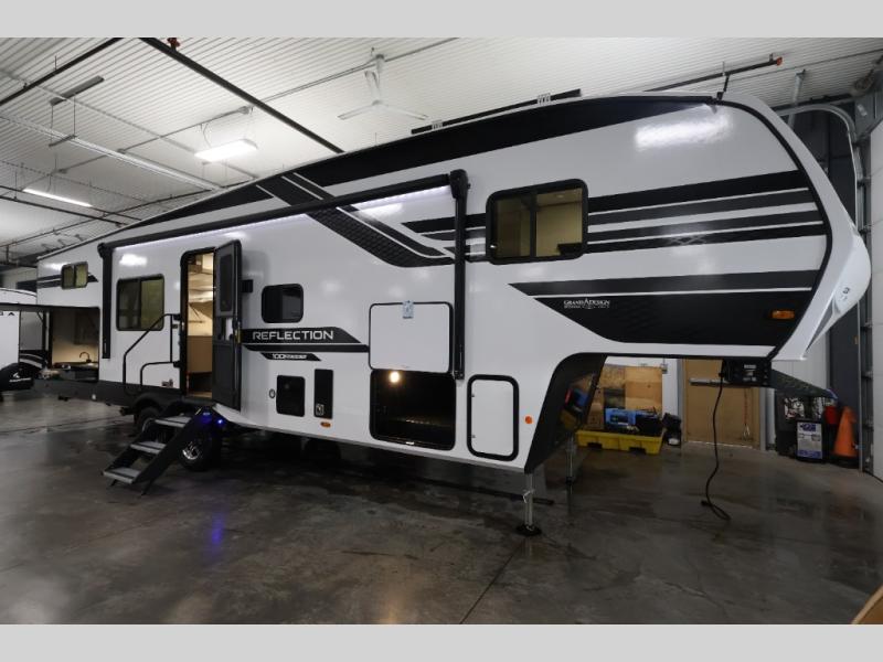 Each Reflection 100 Series fifth wheel by Grand Design is affordable and packed with luxury for unforgettable camping memories! The MorRyde CRE3000 suspension system and Goodyear Endurance tires will provide smooth towing from home to campground. And the solar package with a 180W solar panel, 60 Amp charge controller and 12V refrigerator will allow you to camp for longer periods of time and in more locations! A heated and enclosed underbelly with circulating heat is included in the Arctic 4-Seasons Protection Package, along with a double insulated roof and front cap, and thermofoil insulation under the holding tanks so you can camp all year long if you choose. You will appreciate having an on-demand water heater for hot showers after exploring, and the universal all-in-one docking station will let you monitor your RVs tanks levels and functions with ease. These models also include many luxurious interior features, such as premium Congoleum flooring, pleated shades, residential cabinetry, and matte black fixtures and hardware. Don't let the Reflection 100 Series fifth wheels pass you by!