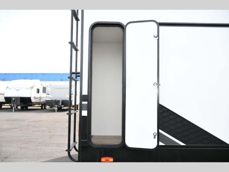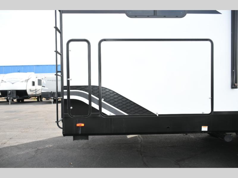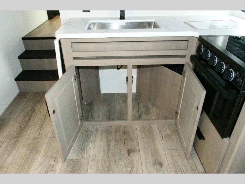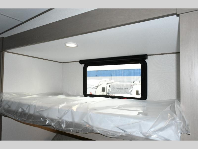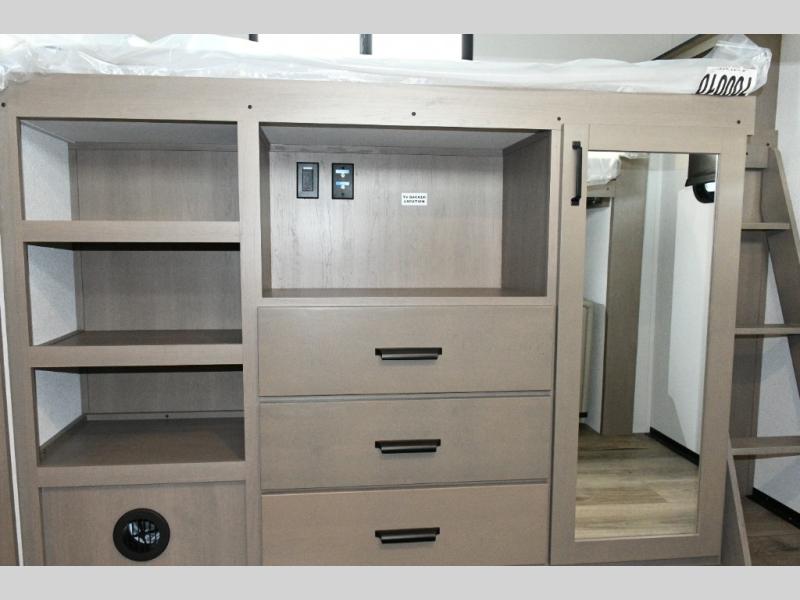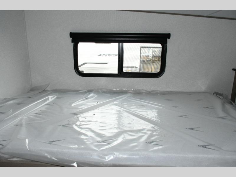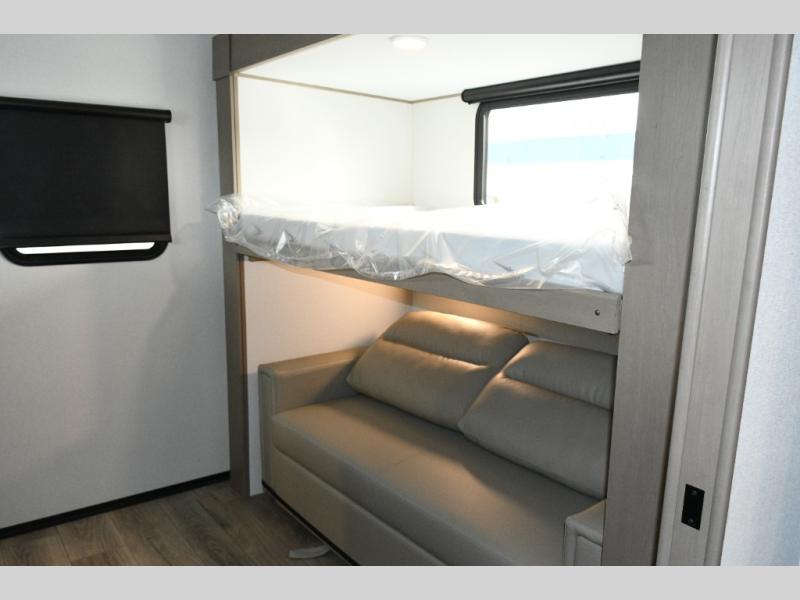 • Rear bunkhouse with versatile sleeping options, including a 36" flip-top bunk, trundle bed, and a 44" bunk with window for natural light