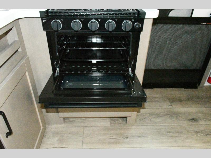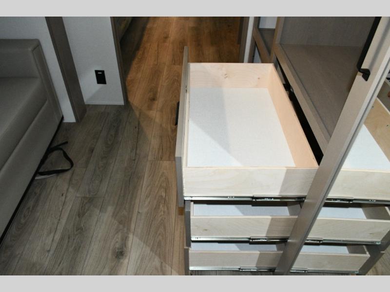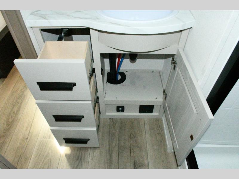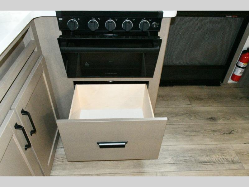 Smooth towing and road confidence come standard thanks to the MORryde CRE3000 suspension system and Goodyear Endurance tires. The included solar package, featuring a 180W solar panel, 60-amp charge controller, and 12V refrigerator, gives you the freedom to camp longer and venture beyond full-hookup campgrounds.