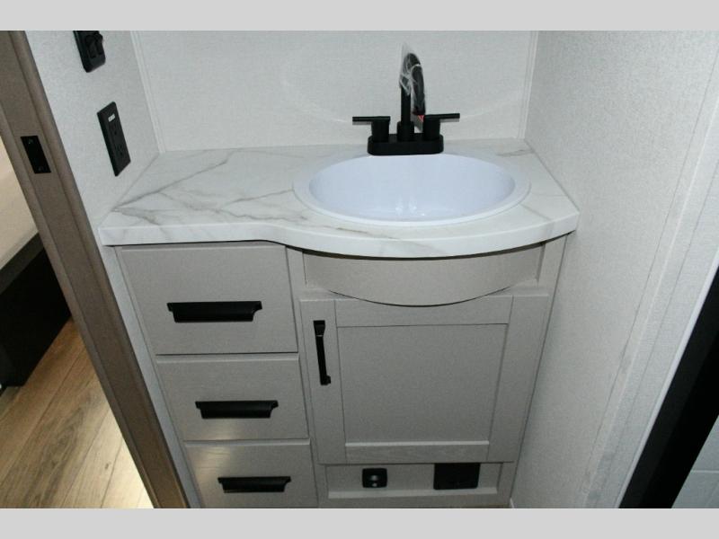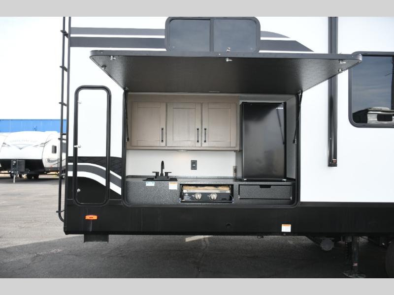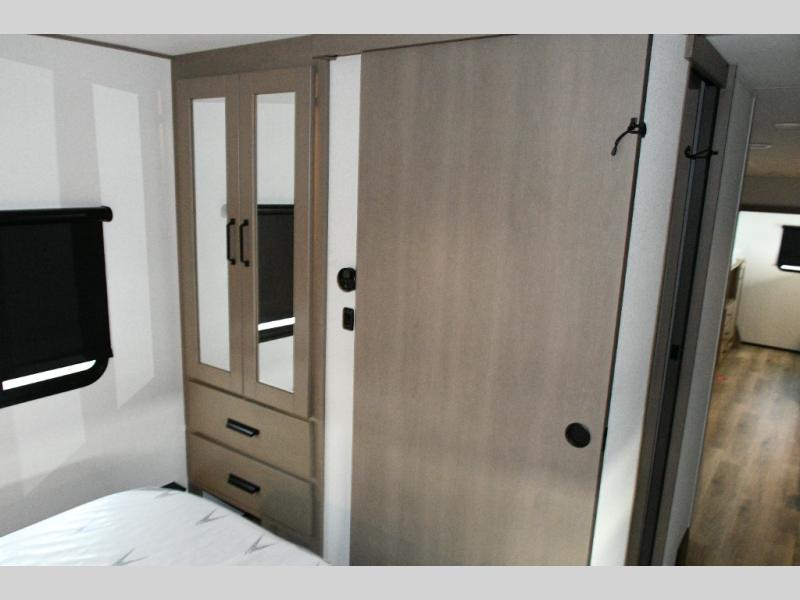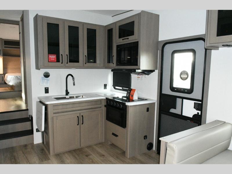 Step inside and you’ll appreciate how thoughtfully this layout is designed for real-world camping. The rear bunkhouse is a standout feature, offering multiple sleeping configurations that make it easy to bring kids, friends, or guests along for the journey. Up front, the private master bedroom provides a quiet retreat, while the central living and kitchen area becomes the heart of the RV for meals, conversation, and downtime after a full day outdoors.