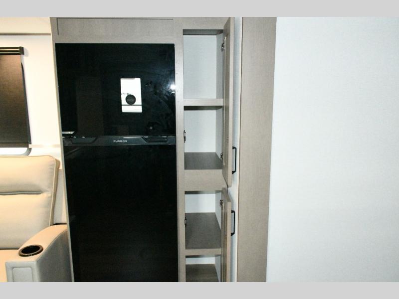 Inside, premium Congoleum flooring, residential cabinetry, pleated shades, and matte black fixtures bring a refined, home-like feel to every trip.