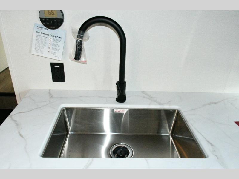 The Reflection 100 Series 32BH is engineered to keep you comfortable across a wide range of conditions. The Arctic 4-Seasons Protection Package includes a heated and enclosed underbelly with circulating heat, double-insulated roof and front cap, and insulated holding tanks, allowing you to camp earlier in the spring and later into the fall. An on-demand water heater ensures hot showers after long days of hiking or exploring, while the universal all-in-one docking station simplifies setup and tank monitoring.