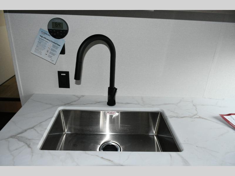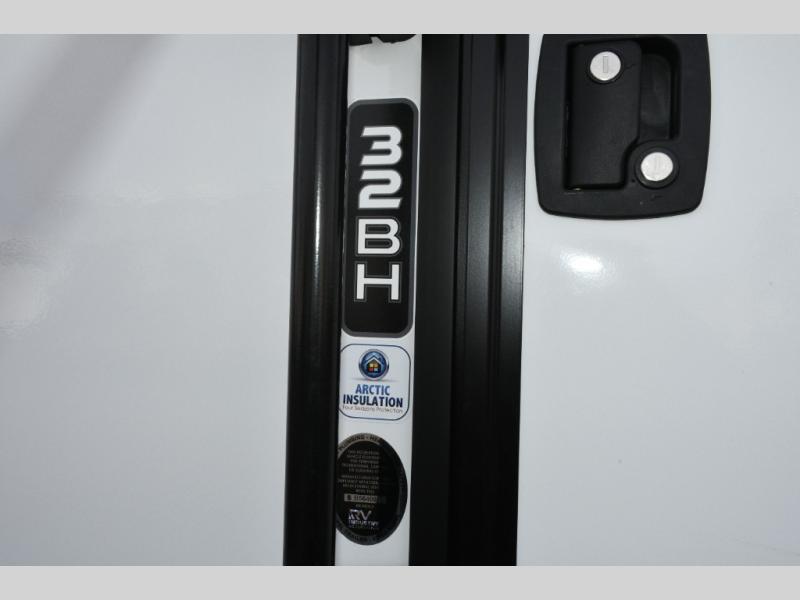 The Reflection 100 Series 32BH is engineered to keep you comfortable across a wide range of conditions. The Arctic 4-Seasons Protection Package includes a heated and enclosed underbelly with circulating heat, double-insulated roof and front cap, and insulated holding tanks, allowing you to camp earlier in the spring and later into the fall. An on-demand water heater ensures hot showers after long days of hiking or exploring, while the universal all-in-one docking station simplifies setup and tank monitoring.