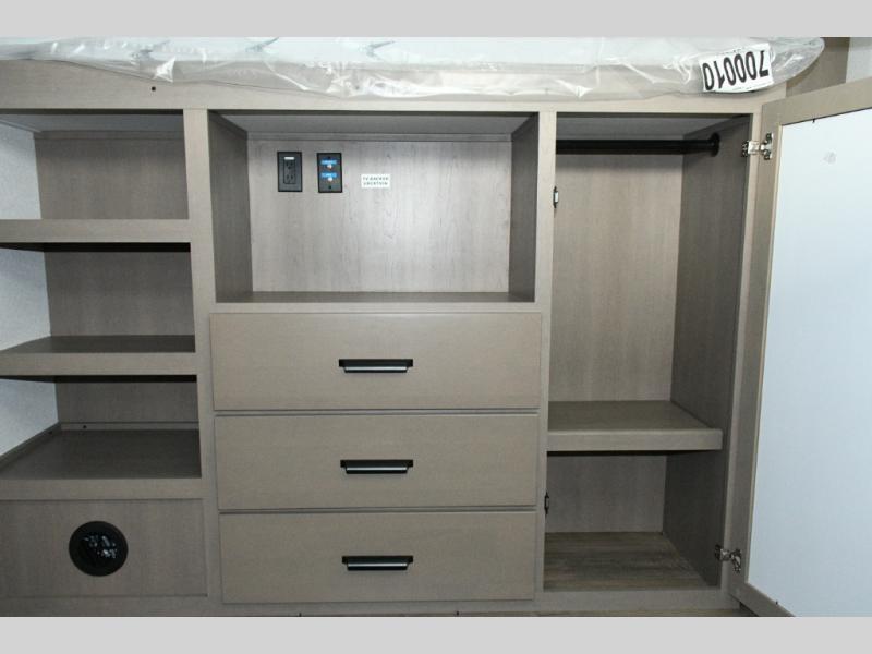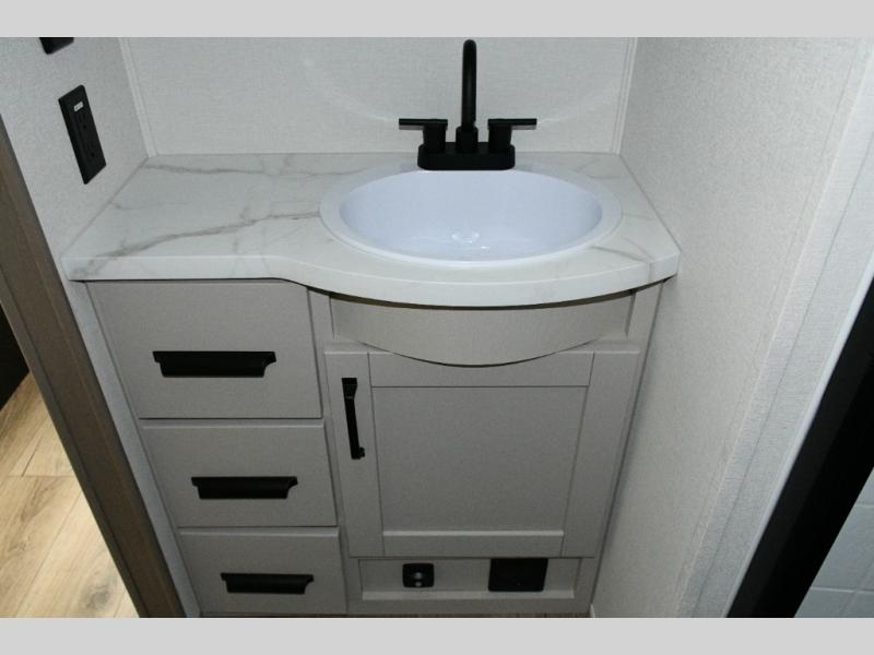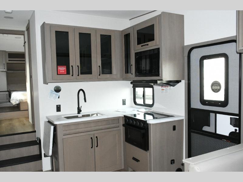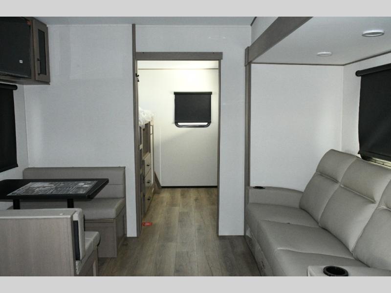 Step inside and you’ll appreciate how thoughtfully this layout is designed for real-world camping. The rear bunkhouse is a standout feature, offering multiple sleeping configurations that make it easy to bring kids, friends, or guests along for the journey. Up front, the private master bedroom provides a quiet retreat, while the central living and kitchen area becomes the heart of the RV for meals, conversation, and downtime after a full day outdoors.