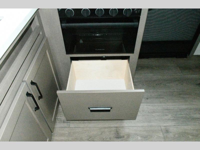 Smooth towing and road confidence come standard thanks to the MORryde CRE3000 suspension system and Goodyear Endurance tires. The included solar package, featuring a 180W solar panel, 60-amp charge controller, and 12V refrigerator, gives you the freedom to camp longer and venture beyond full-hookup campgrounds.
