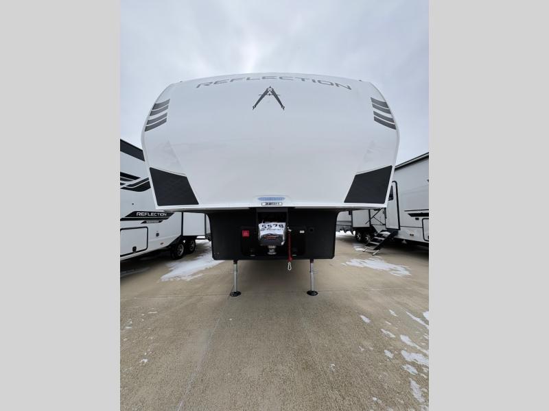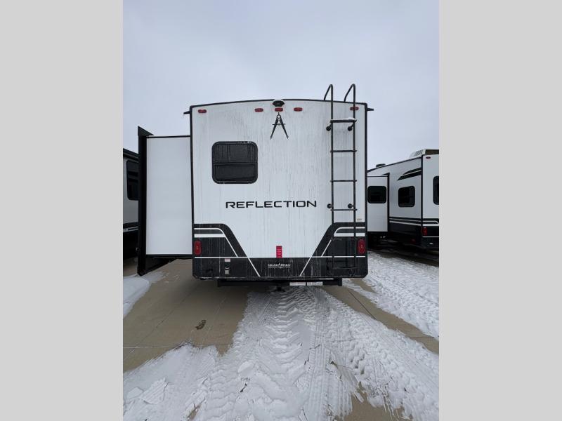 Each Reflection 100 Series fifth wheel by Grand Design is affordable and packed with luxury for unforgettable camping memories! The MorRyde CRE3000 suspension system and Goodyear Endurance tires will provide smooth towing from home to campground. And the solar package with a 180W solar panel, 60 Amp charge controller and 12V refrigerator will allow you to camp for longer periods of time and in more locations! A heated and enclosed underbelly with circulating heat is included in the Arctic 4-Seasons Protection Package, along with a double insulated roof and front cap, and thermofoil insulation under the holding tanks so you can camp all year long if you choose. You will appreciate having an on-demand water heater for hot showers after exploring, and the universal all-in-one docking station will let you monitor your RVs tanks levels and functions with ease. These models also include many luxurious interior features, such as premium Congoleum flooring, pleated shades, residential cabinetry, and matte black fixtures and hardware. Don't let the Reflection 100 Series fifth wheels pass you by!