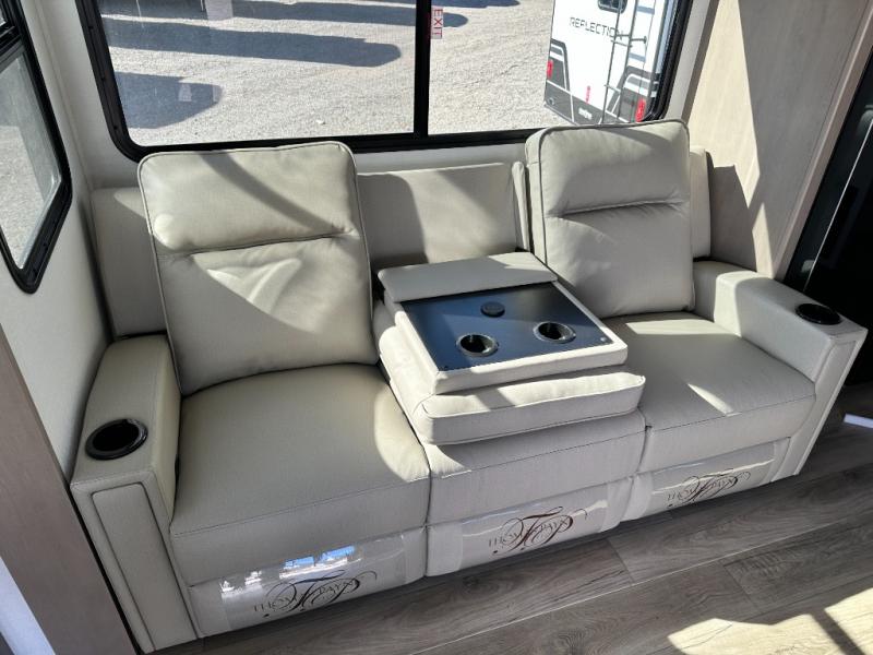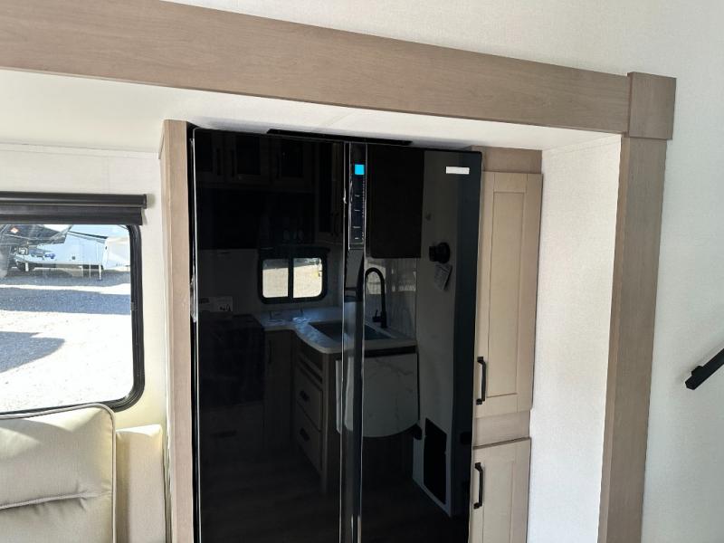 With any Reflection 150 Series fifth wheel by Grand Design, there is more available payload capacity and a broader range of half-ton trucks capable of towing this fifth wheel, and no slider hitch is needed thanks to the 90-degree turning radius which makes them short bed friendly and easier to tow. The mandatory Ultimate Power package provides a "One-Touch" automatic leveling system and a detachable power cord with LED light for easy setup, plus motion sensor pass-through lighting and entry lighting, and the Tire Linc TPMS will help you stay safe on the road. The interior offers residential luxury from the cabinetry and premium Congoleum flooring, to the booth dinette and residential-style window treatment. Make your refined decision today!