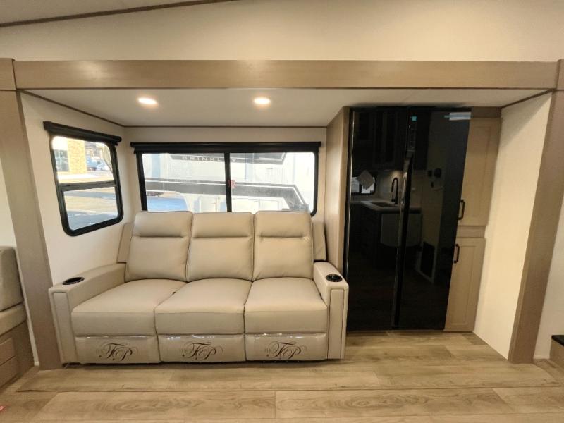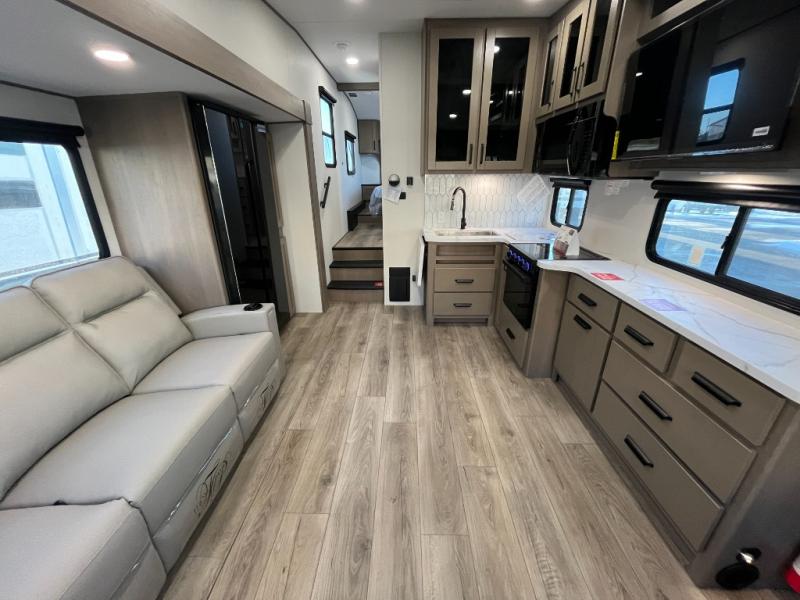 With any Reflection 150 Series fifth wheel by Grand Design, there is more available payload capacity and a broader range of half-ton trucks capable of towing this fifth wheel, and no slider hitch is needed thanks to the 90-degree turning radius which makes them short bed friendly and easier to tow. The mandatory Ultimate Power package provides a "One-Touch" automatic leveling system and a detachable power cord with LED light for easy setup, plus motion sensor pass-through lighting and entry lighting, and the Tire Linc TPMS will help you stay safe on the road. The interior offers residential cabinetry and premium Congoleum flooring, to the booth dinette and residential-style window treatment. Make your refined decision today!