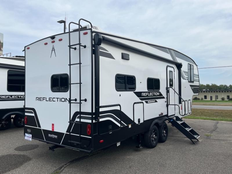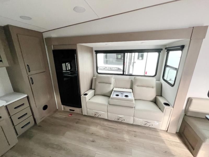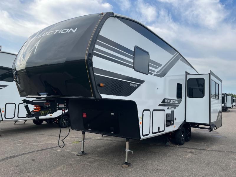 With any Reflection 150 Series fifth wheel by Grand Design, there is more available payload capacity and a broader range of half-ton trucks capable of towing this fifth wheel, and no slider hitch is needed thanks to the 90-degree turning radius which makes them short bed friendly and easier to tow. The mandatory Ultimate Power package provides a "One-Touch" automatic leveling system and a detachable power cord with LED light for easy setup, plus motion sensor pass-through lighting and entry lighting, and the Tire Linc TPMS will help you stay safe on the road. The interior offers residential luxury from the cabinetry and premium Congoleum flooring, to the booth dinette and residential-style window treatment. Make your refined decision today!
