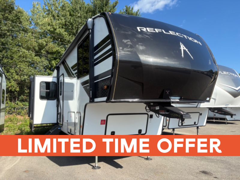 With any Reflection 150 Series fifth wheel by Grand Design, there is more available payload capacity and a broader range of half-ton trucks capable of towing this fifth wheel, and no slider hitch is needed thanks to the 90-degree turning radius which makes them short bed friendly and easier to tow. The mandatory Ultimate Power package provides a "One-Touch" automatic leveling system and a detachable power cord with LED light for easy setup, plus motion sensor pass-through lighting and entry lighting, and the Tire Linc TPMS will help you stay safe on the road. The interior offers residential luxury from the cabinetry and premium Congoleum flooring, to the booth dinette and residential-style window treatment. Make your refined decision today!