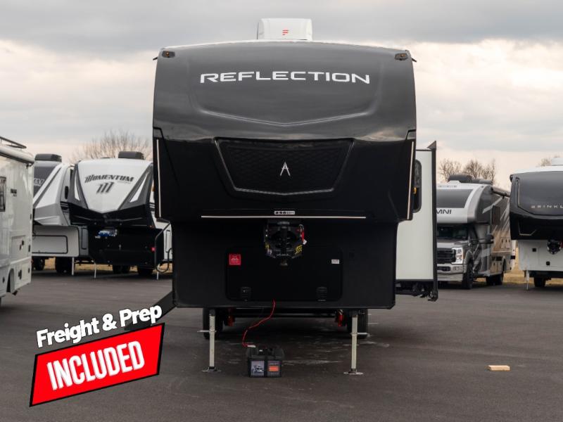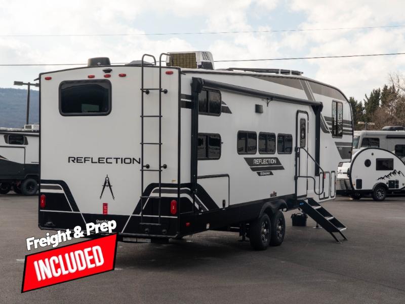 With any Reflection 150 Series fifth wheel by Grand Design, there is more available payload capacity and a broader range of half-ton trucks capable of towing this fifth wheel, and no slider hitch is needed thanks to the 90-degree turning radius which makes them short bed friendly and easier to tow. The mandatory Ultimate Power package provides a "One-Touch" automatic leveling system and a detachable power cord with LED light for easy setup, plus motion sensor pass-through lighting and entry lighting, and the Tire Linc TPMS will help you stay safe on the road. The interior offers residential cabinetry and premium Congoleum flooring, to the booth dinette and residential-style window treatment. Make your refined decision today!