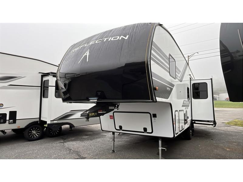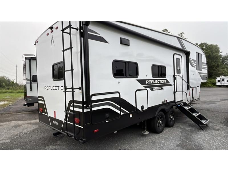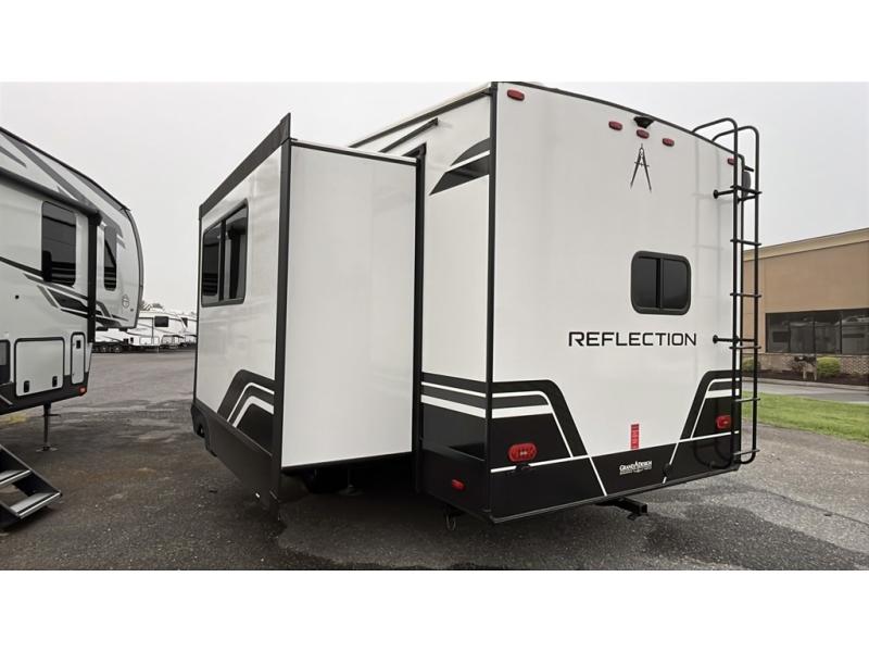 With any Reflection 150 Series fifth wheel by Grand Design, there is more available payload capacity and a broader range of half-ton trucks capable of towing this fifth wheel, and no slider hitch is needed thanks to the 90-degree turning radius which makes them short bed friendly and easier to tow. The mandatory Ultimate Power package provides a "One-Touch" automatic leveling system and a detachable power cord with LED light for easy setup, plus motion sensor pass-through lighting and entry lighting, and the Tire Linc TPMS will help you stay safe on the road. The interior offers residential luxury from the cabinetry and premium Congoleum flooring, to the booth dinette and residential-style window treatment. Make your refined decision today!