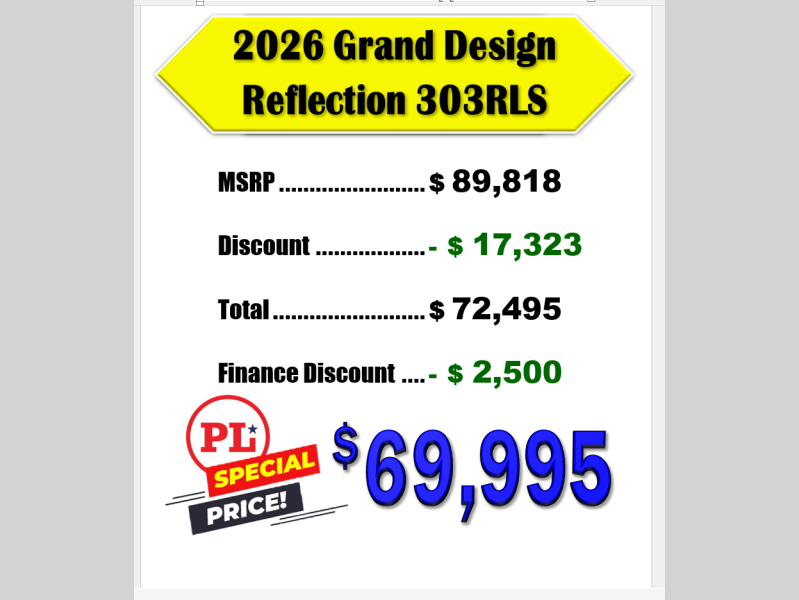 New 2026 Grand Design Reflection 303RLS Fifth Wheel