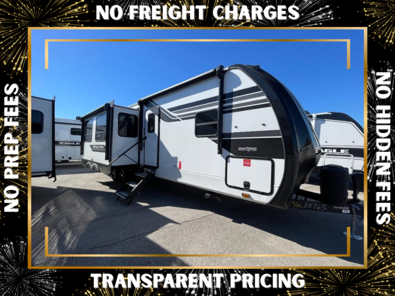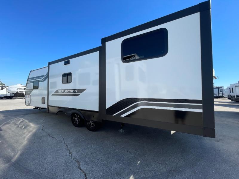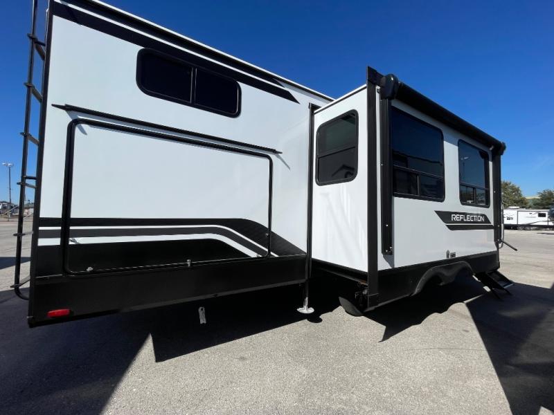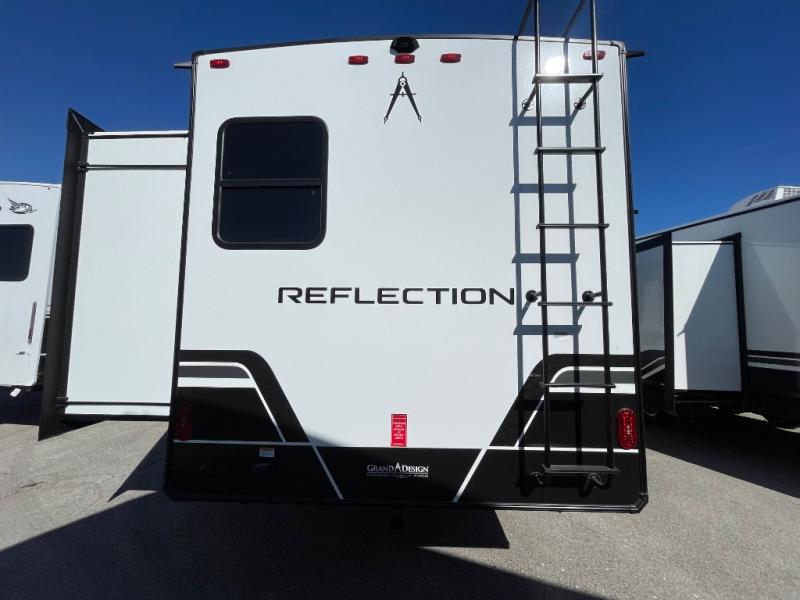 With any Reflection travel trailer by Grand Design, you will have a solar panel for off-grid camping and a 60 amp charge controller and inverter prep, a Universal All-In-One docking station, unobstructed pass-through storage, and Goodyear Endurance tires. Each is constructed of gel coat exterior sidewalls, residential 5" truss rafters, walk-on roof decking, a fiberglass and radiant foil roof and front cap insulation plus laminated aluminum framed side walls, roof and end walls in slide rooms. Head inside to enjoy residential hardwood cabinet doors, premium Congoleum flooring, a spacious shower with a glass door, and many more comforts!