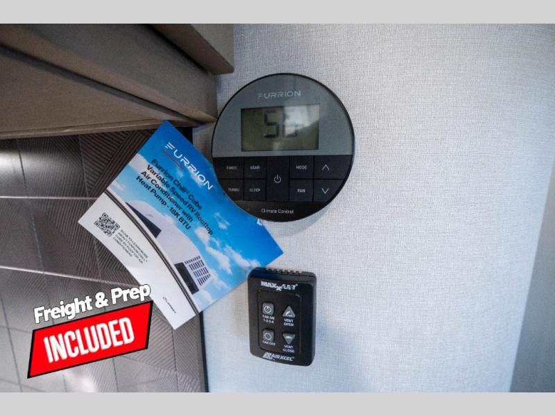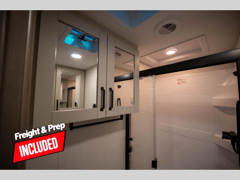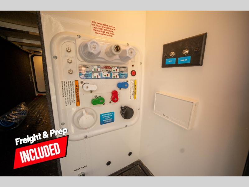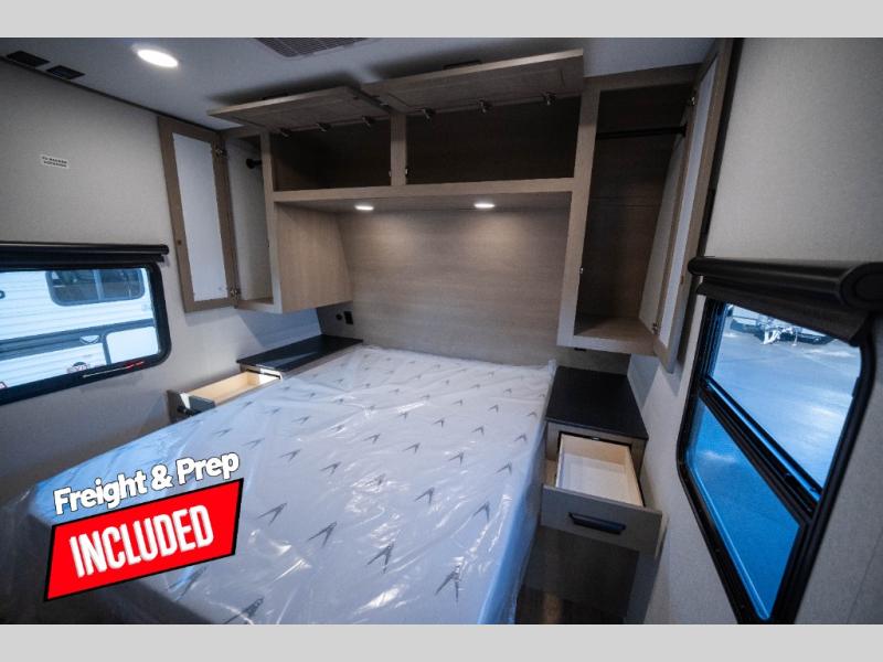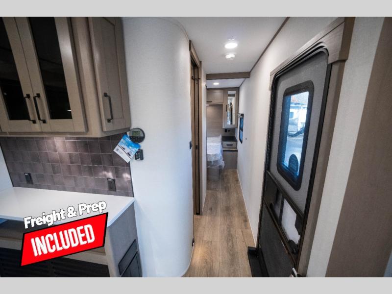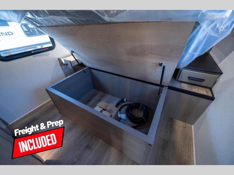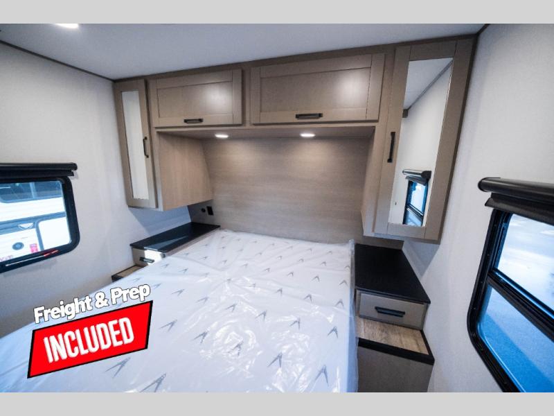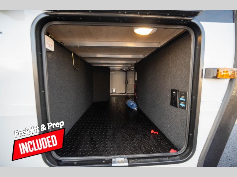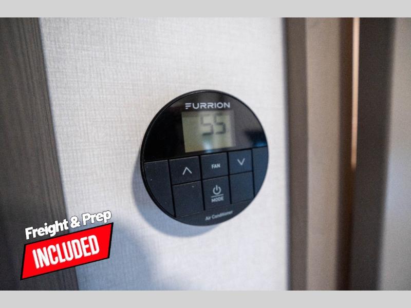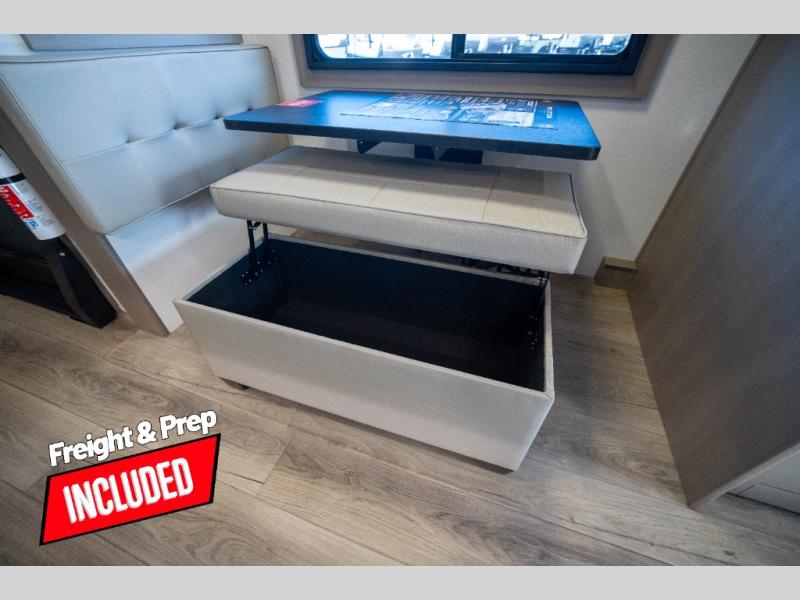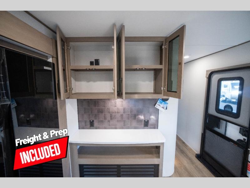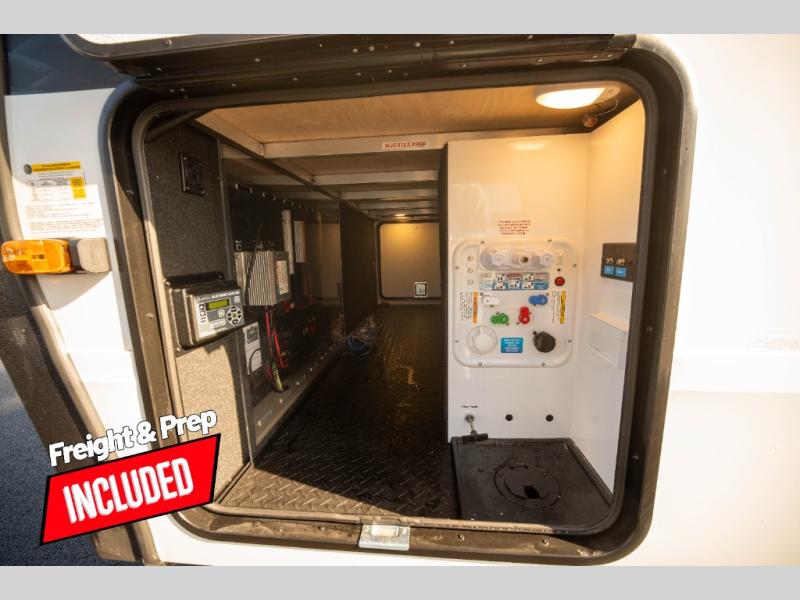 Whether you travel to explore or relax, this trailer will give you the choice depending where you park it! The kitchen amenities offer a gourmet kitchen including a 16 cu. ft. refrigerator, an island, and a hutch. You and your guests will find theater seating with cupholders, a booth dinette or optional swivel dinette, and a tri-fold sofa to sit on and visit while you watch the 40" LED HDTV with a fireplace below. The full bathroom includes a space saving sliding door and linen storage, and the bedroom gives you a front walk-around queen bed with storage for your clothes on each side. There is even washer and dryer prep here if you choose to go full-time. Outside, you'll find a 12' electric awning, an LP Quick Connect and Coax TV hookup, plus an exterior griddle, 4.1 cu. ft. refrigerator and outside spray port!
