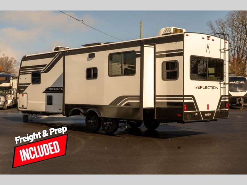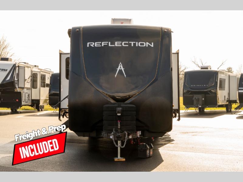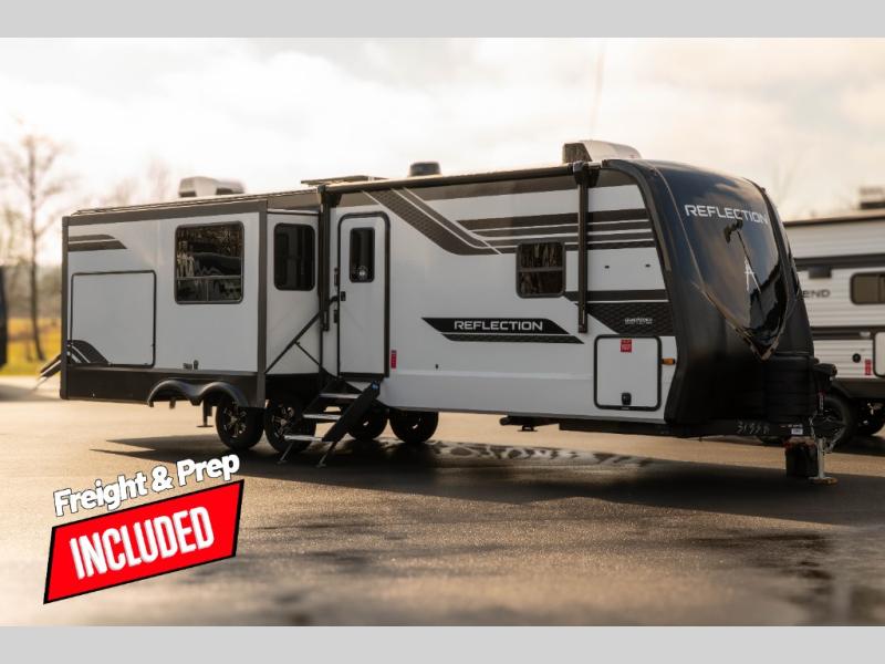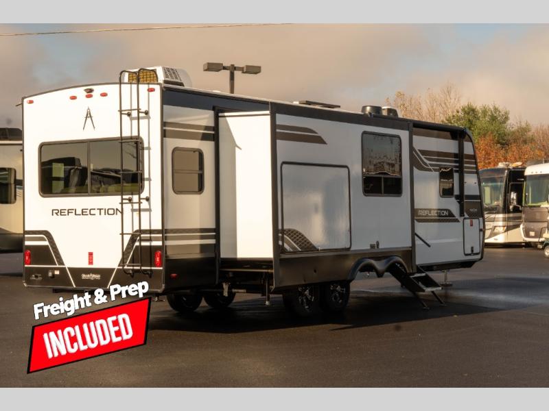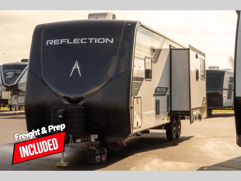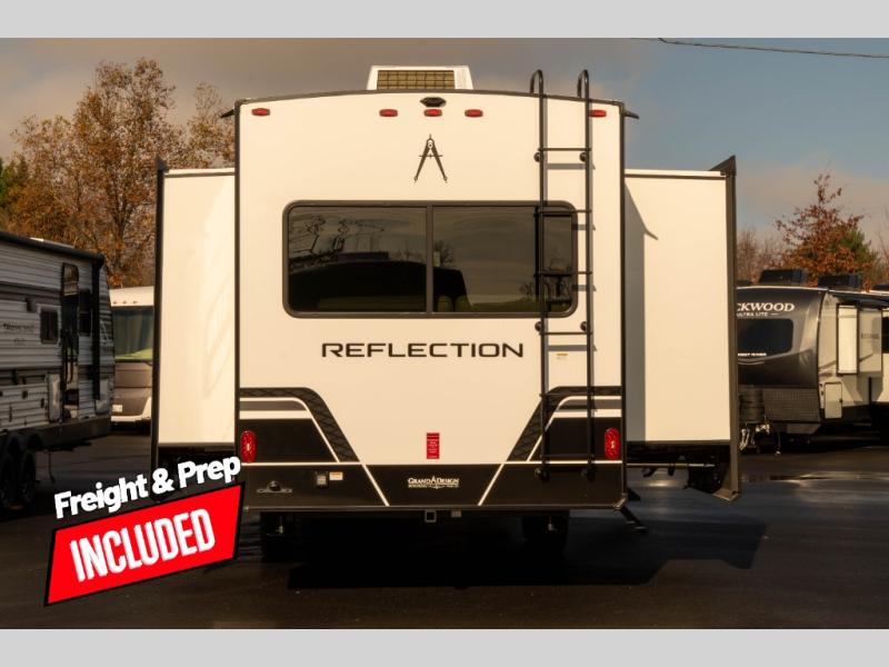 With any Reflection travel trailer by Grand Design, you will have a solar panel for off-grid camping and a 60 amp charge controller and inverter prep, a Universal All-In-One docking station, unobstructed pass-through storage, and Goodyear Endurance tires. Each is constructed of gel coat exterior sidewalls, residential 5" truss rafters, walk-on roof decking, a fiberglass and radiant foil roof and front cap insulation plus laminated aluminum framed side walls, roof and end walls in slide rooms. Head inside to enjoy residential hardwood cabinet doors, premium Congoleum flooring, a spacious shower with a glass door, and many more comforts!