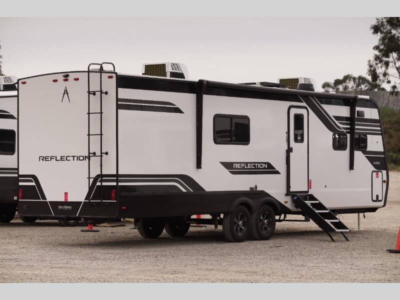 With any Reflection travel trailer by Grand Design, you will have a solar panel for off-grid camping and a 60-amp charge controller and inverter prep, a Universal All-In-One docking station, unobstructed pass-through storage, and Goodyear Endurance tires. Each is constructed of gel coat exterior sidewalls, residential 5" truss rafters, walk-on roof decking, a fiberglass and radiant foil roof and front cap insulation plus laminated aluminum framed side walls, roof and end walls in slide rooms. Head inside to enjoy residential hardwood cabinet doors, premium Congoleum flooring, a spacious shower with a glass door, and many more comforts!