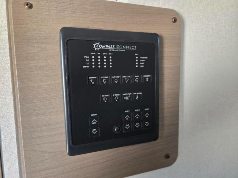 With any Reflection fifth wheel by Grand Design, you will have a solar panel for off-grid camping and a 60 amp charge controller and inverter prep, a Universal All-In-One docking station, unobstructed pass-through storage, and Goodyear Endurance tires. Each is constructed of gel coat exterior sidewalls, residential 5" truss rafters, walk-on roof decking, a fiberglass and radiant foil roof and front cap insulation plus laminated aluminum framed side walls, roof and end walls in slide rooms. Head inside to enjoy residential hardwood cabinet doors, premium Congoleum flooring, a spacious shower with a glass door, and many more comforts!