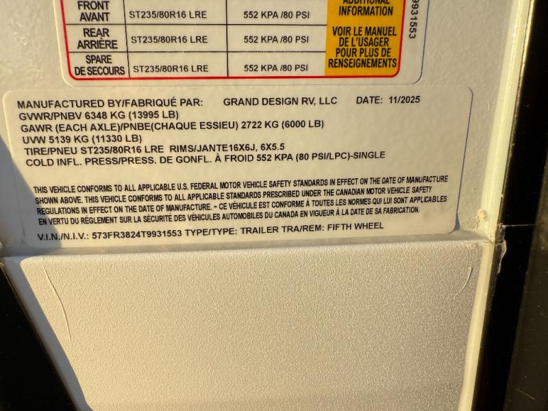 New 2026 Grand Design Reflection 324MBS Fifth Wheel