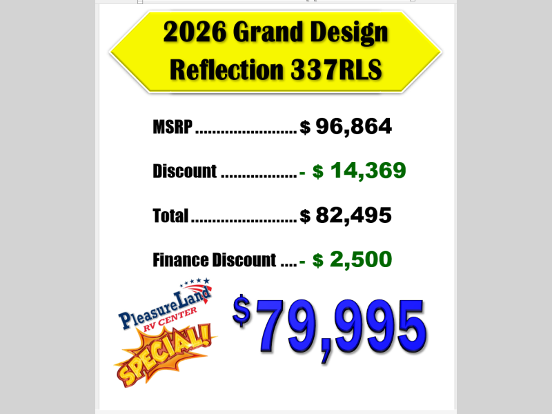 New 2026 Grand Design Reflection 337RLS Fifth Wheel